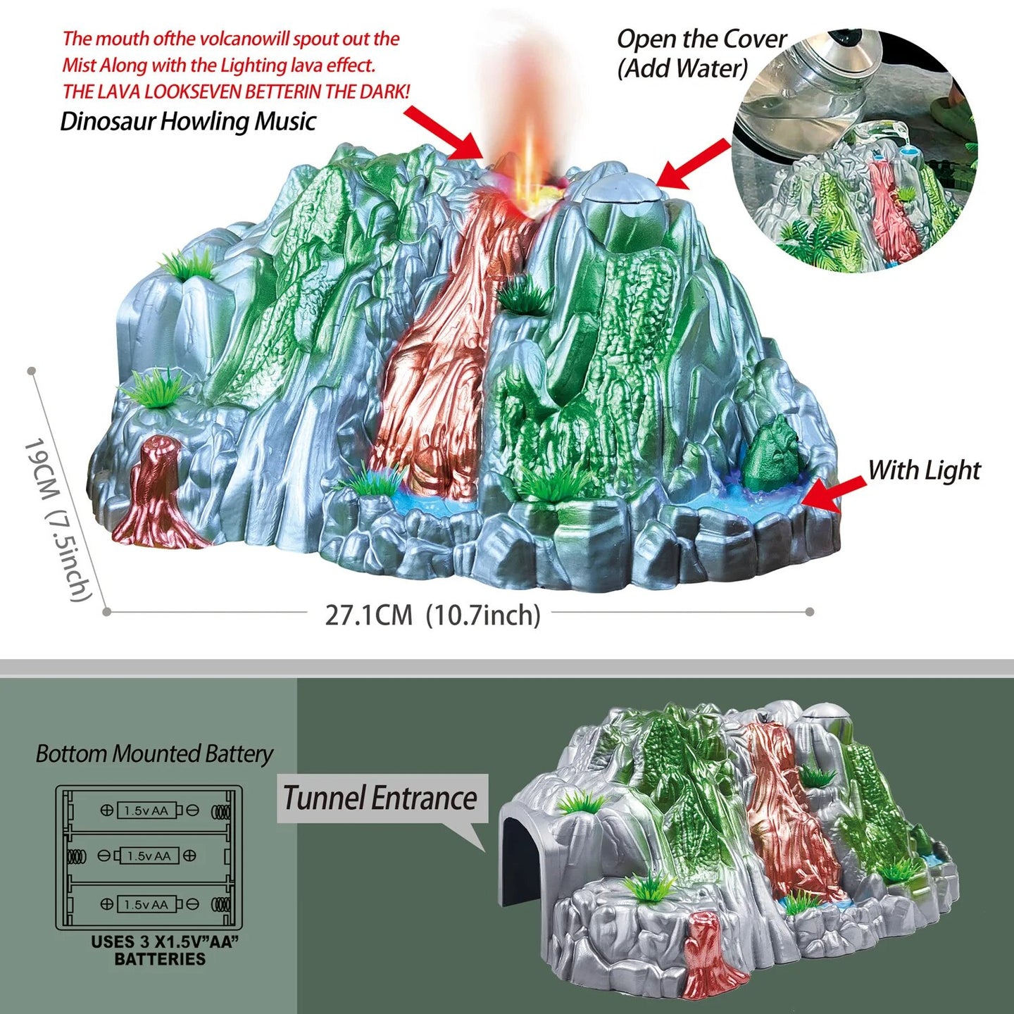 Dinosaur Toys for Kids Mist-spouting Volcano And Climbing Track Train Kit Toys for Boys/Girls Home schoolers Gift for Party Deco