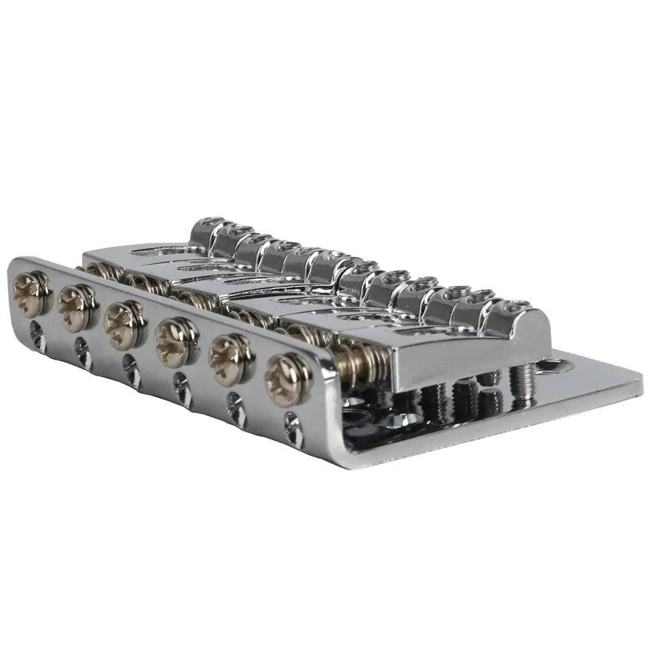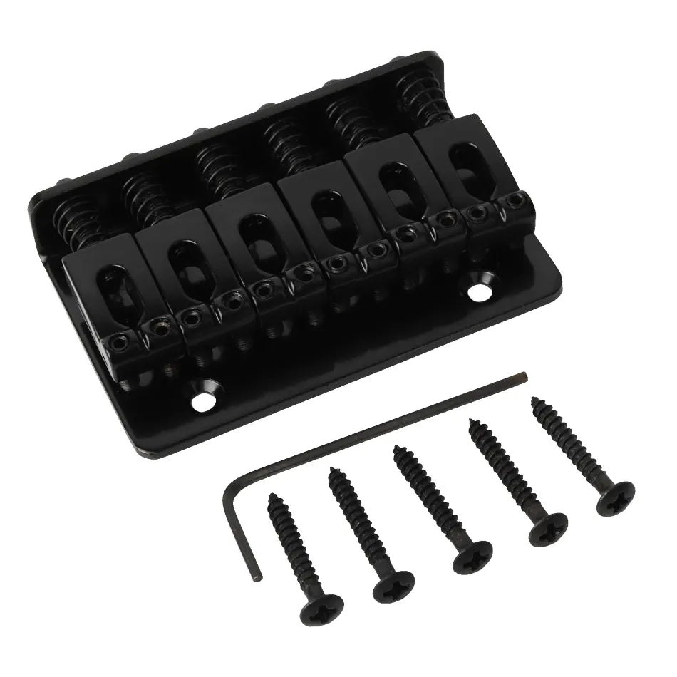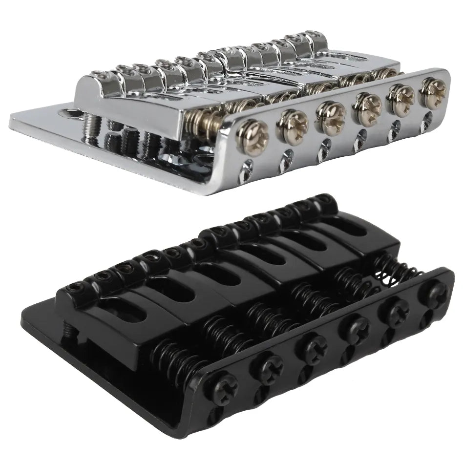 6 String 65MM Metal Fixed Hardtail Saddle Bridge Top Load Guitar Tailpiece for Electric Guitar Accessory, Chrome and Black