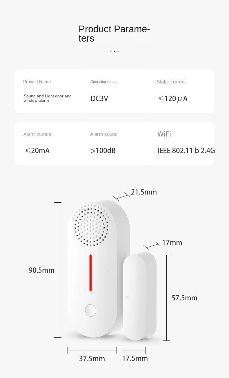 Tuya doors and Windows alarm detector WiFi Windows sensor family system sound alarm and intelligent anti-theft alarm to worklife