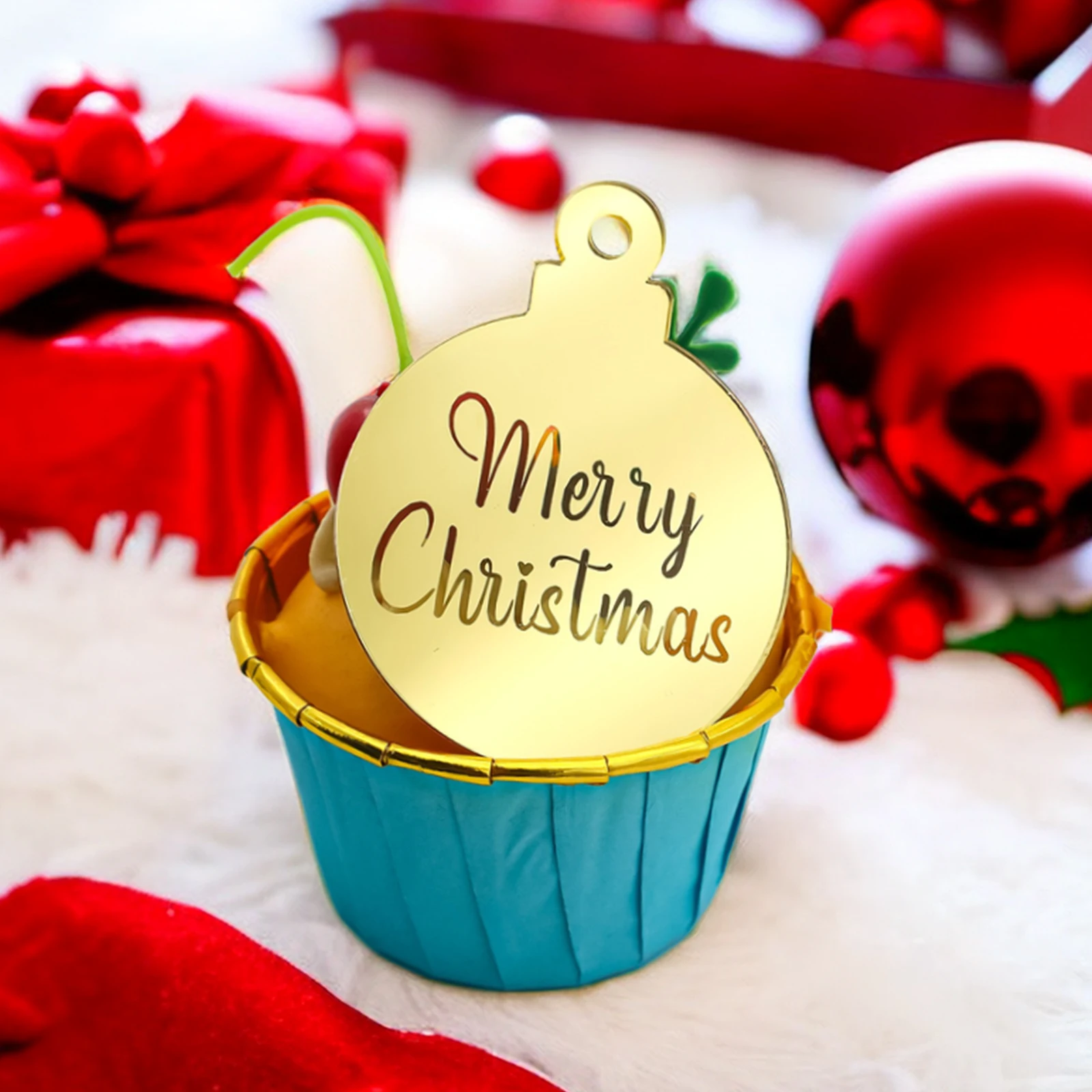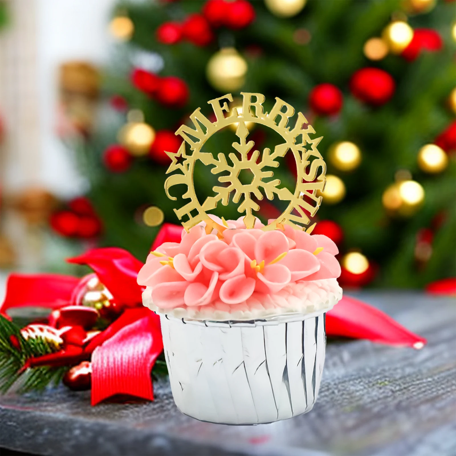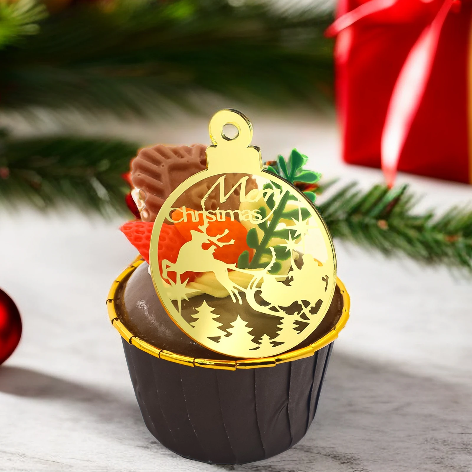 6pcs Merry Christmas Bell Acrylic CupCake Topper for Christmas Party Supplies