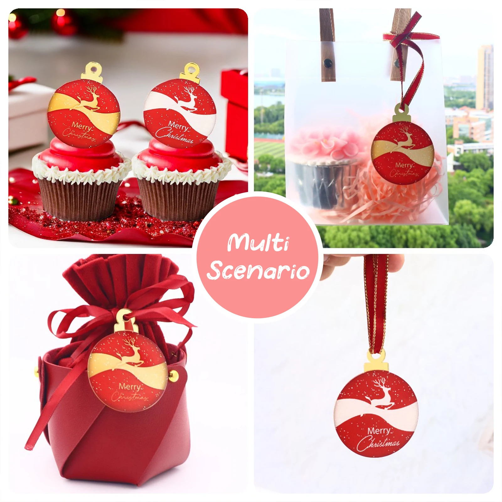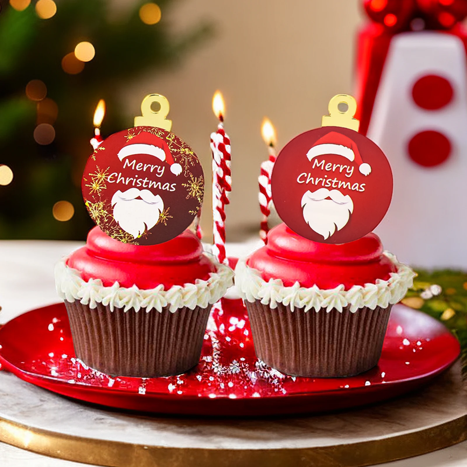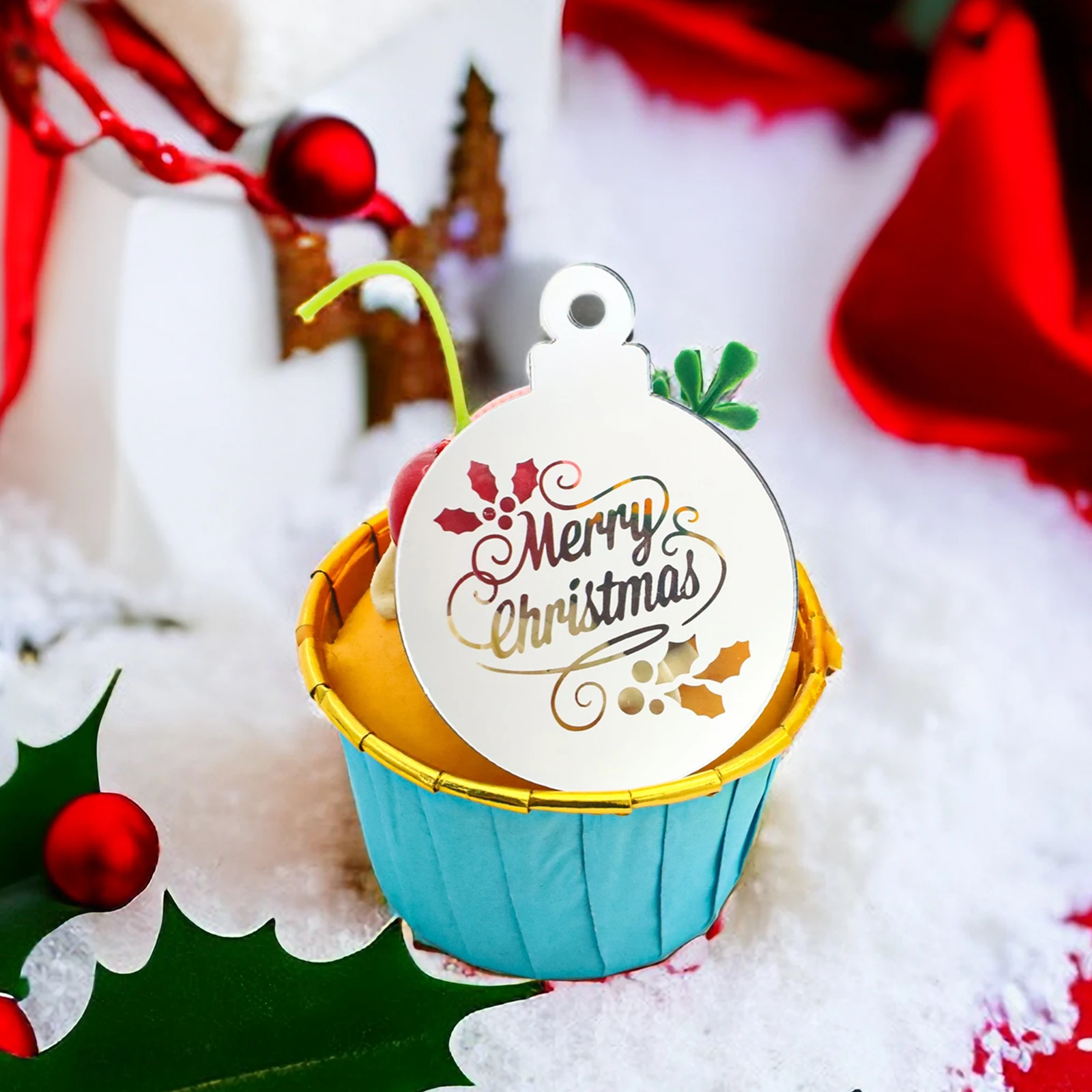 6pcs Merry Christmas Bell Acrylic CupCake Topper for Christmas Party Supplies