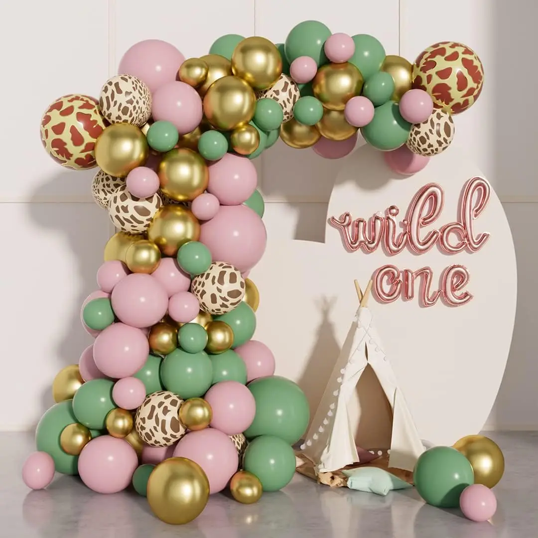 Jungle Safari Green Balloon Garland Arch Kit Kids Birthday Party Supplies Deer Pattern Gold Latex Ballons Baby Shower Decoration