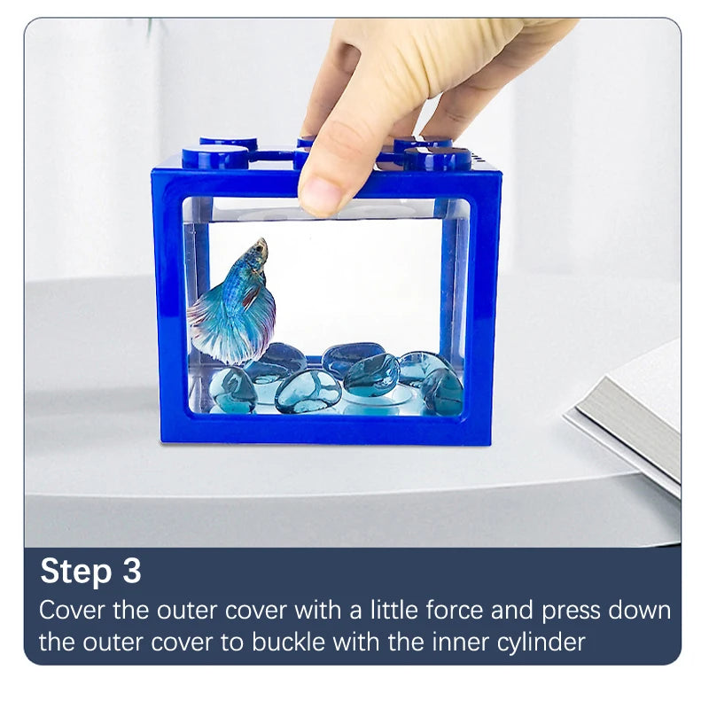 Explore a unique world with our Creative Multicolor Stackable Building Blocks Ecological Mini Aquarium. This miniature fish tank is perfect for small reptiles and insects, housed in a pet box that doubles as an ecological landscape, complete with vibrant seaweed for added charm.