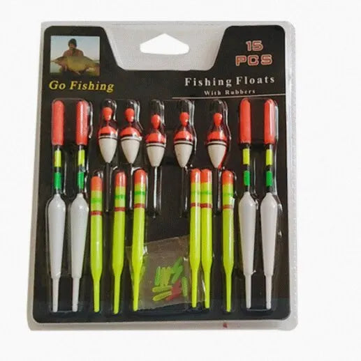 Fish Float Suit Fish Float 1 Set 15 Pieces Vertical Buoy Sea Fishing Various Attachment Rubbers Fishing Lures Gear Float