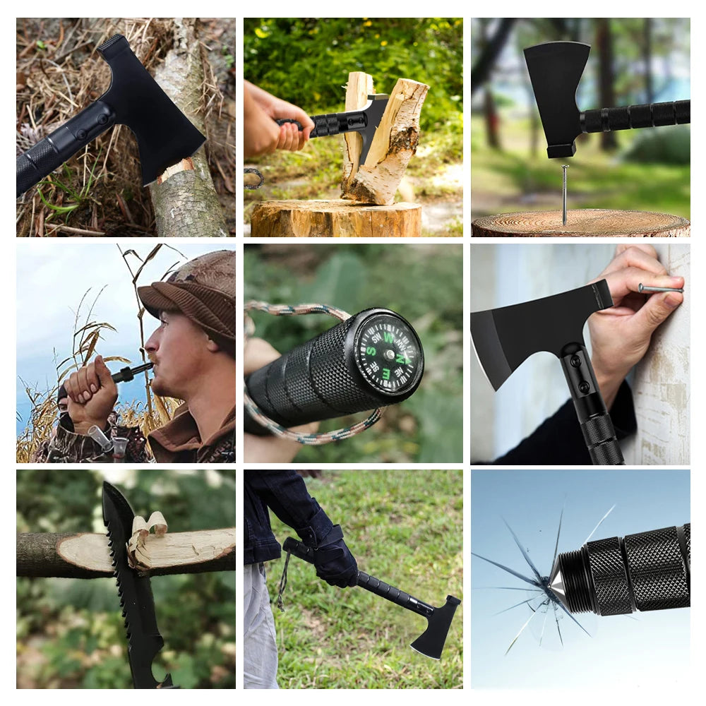 Foldable Axe Multi Tool Kit Tomahawk High Carbon Steel Outdoor Camping Survival Woodworking Firewood Chopping Axes Tactical AX
