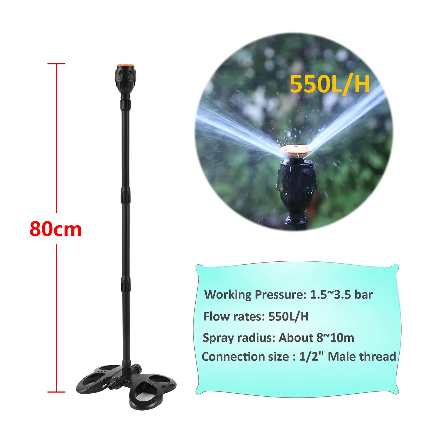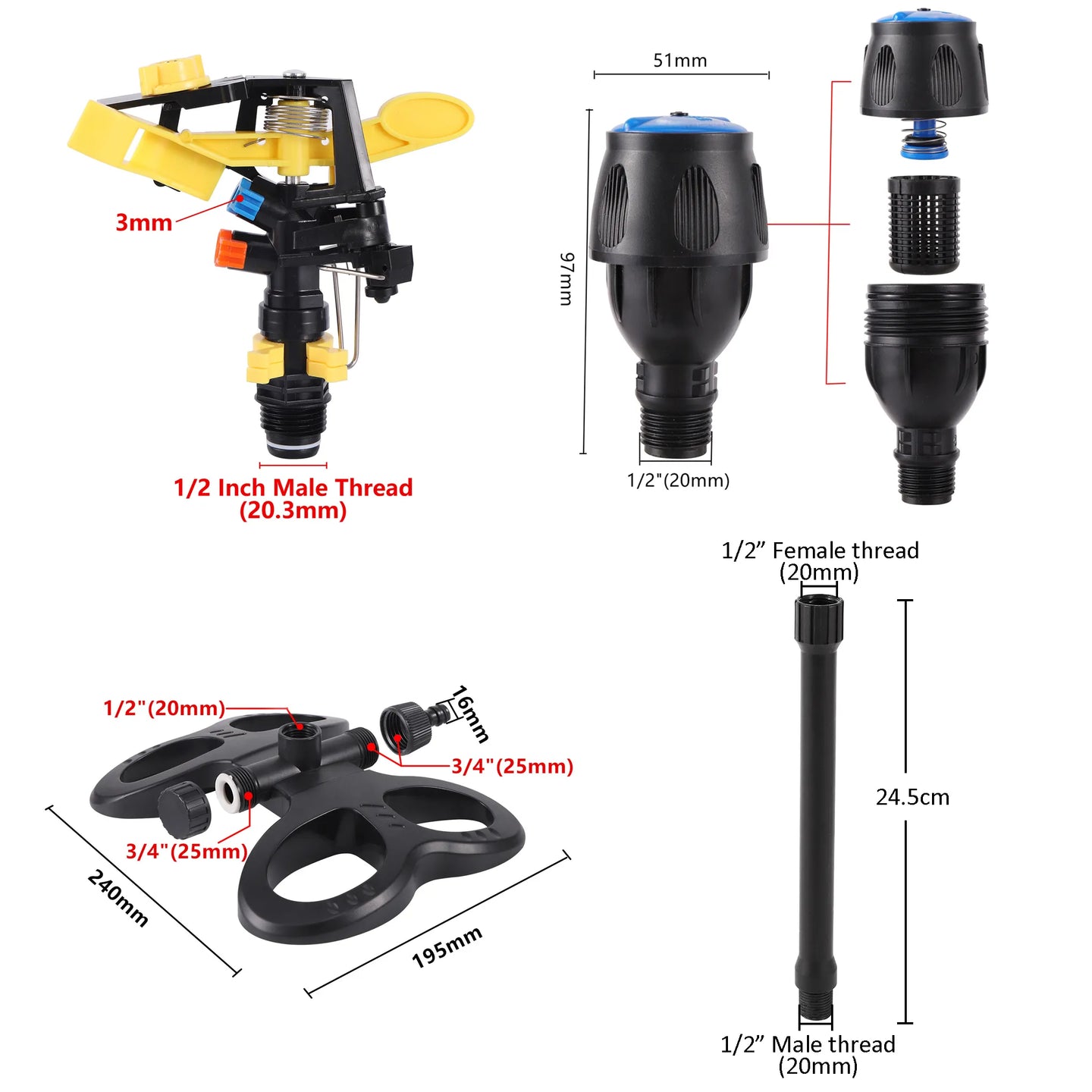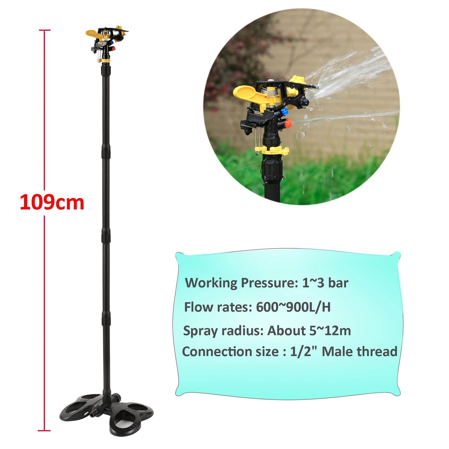 Garden Watering Sprinkler with Base Extended Support Rotating Nozzle Rocker Impact Sprinkler Lawn Plant Flower Irrigation Nozzle
