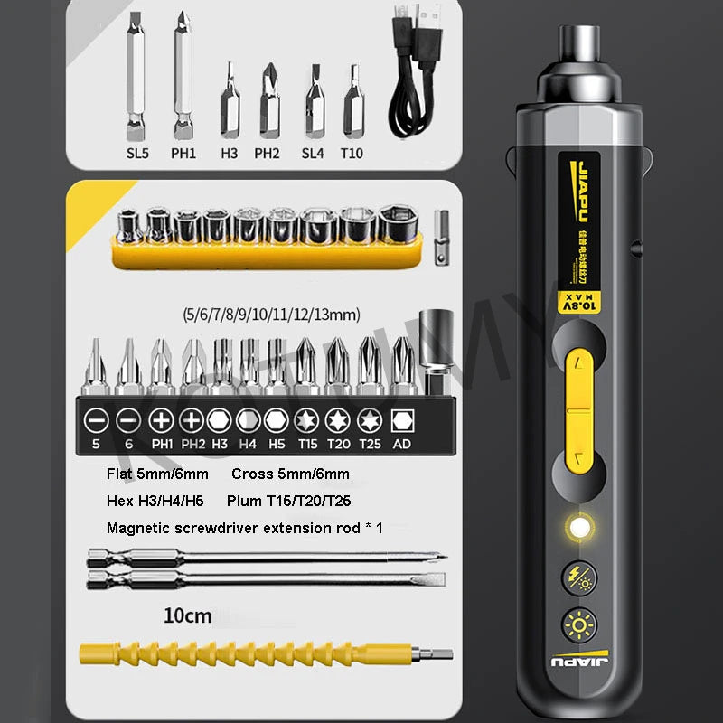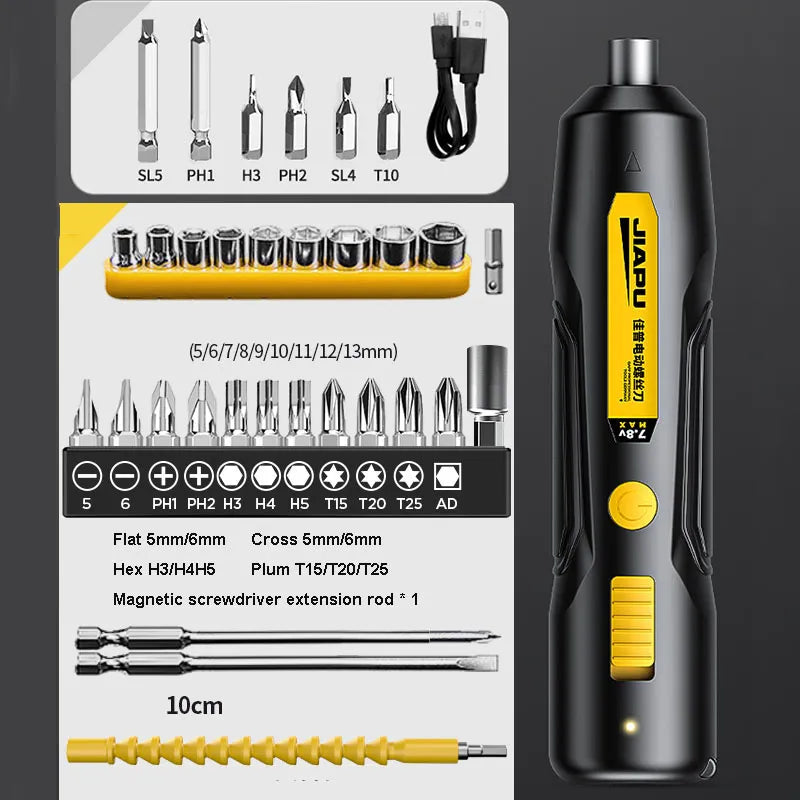 Electric Screwdriver Rechargeable Household Electric Batch Electric Drill Driver Mini Automatic Screwdriver Tool Sets with LED