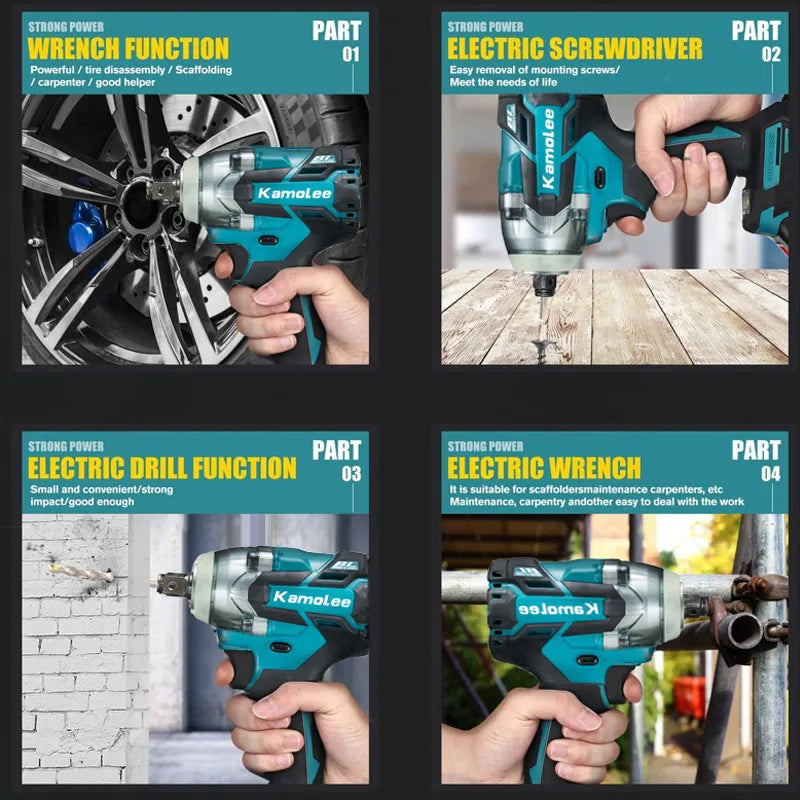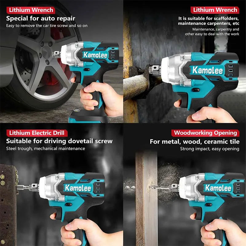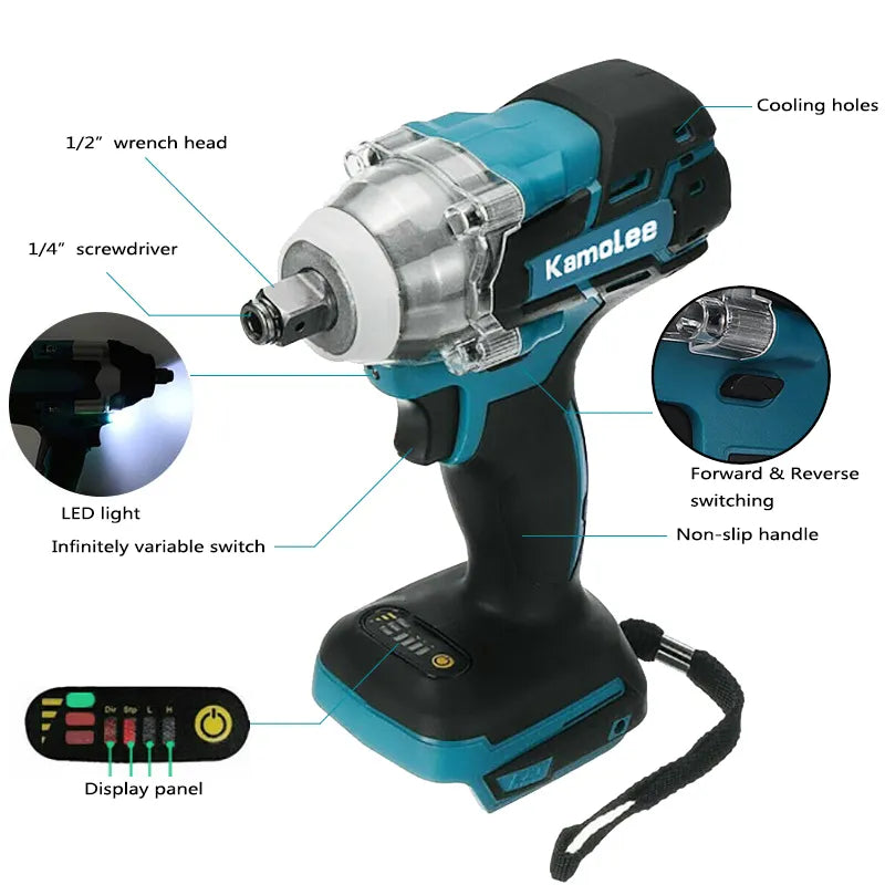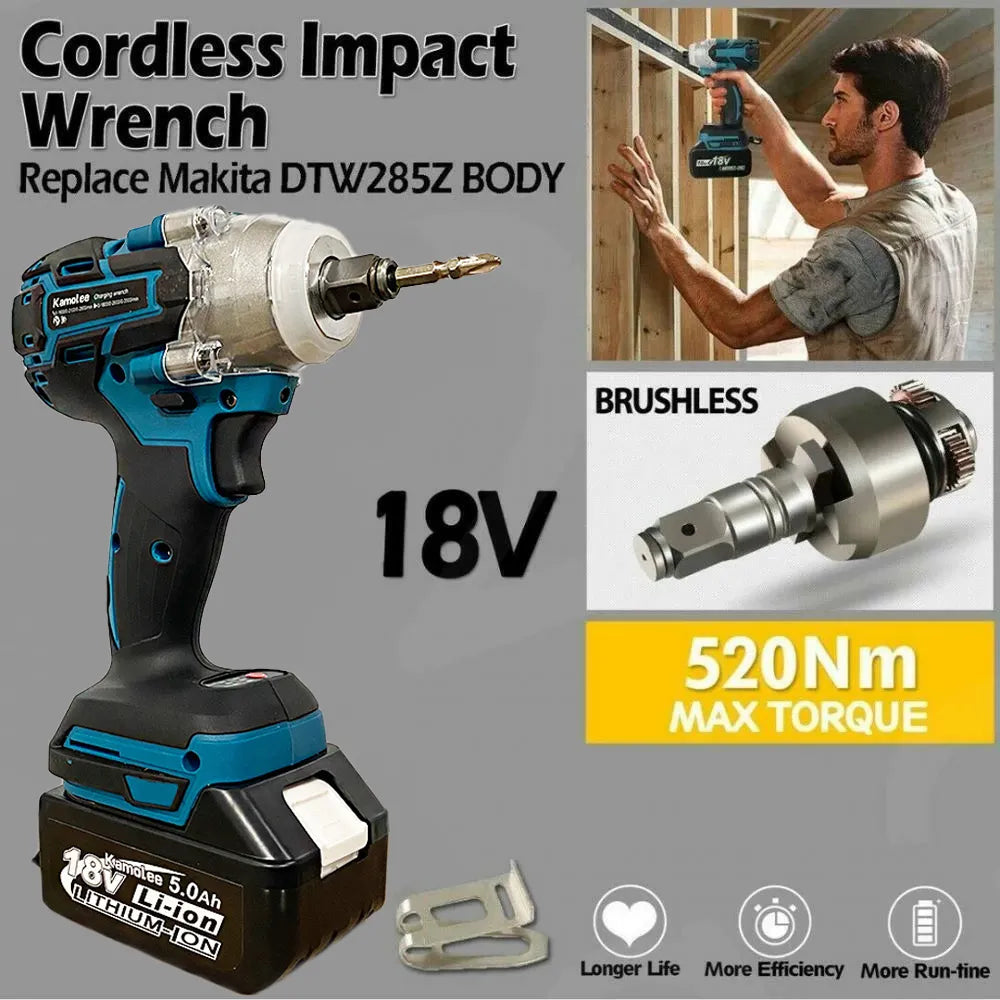 Kamolee 520N.M Brushless Cordless Electric Impact Wrench DTW285 Dual Function Power Tools Compatible with 18V Makita Battery