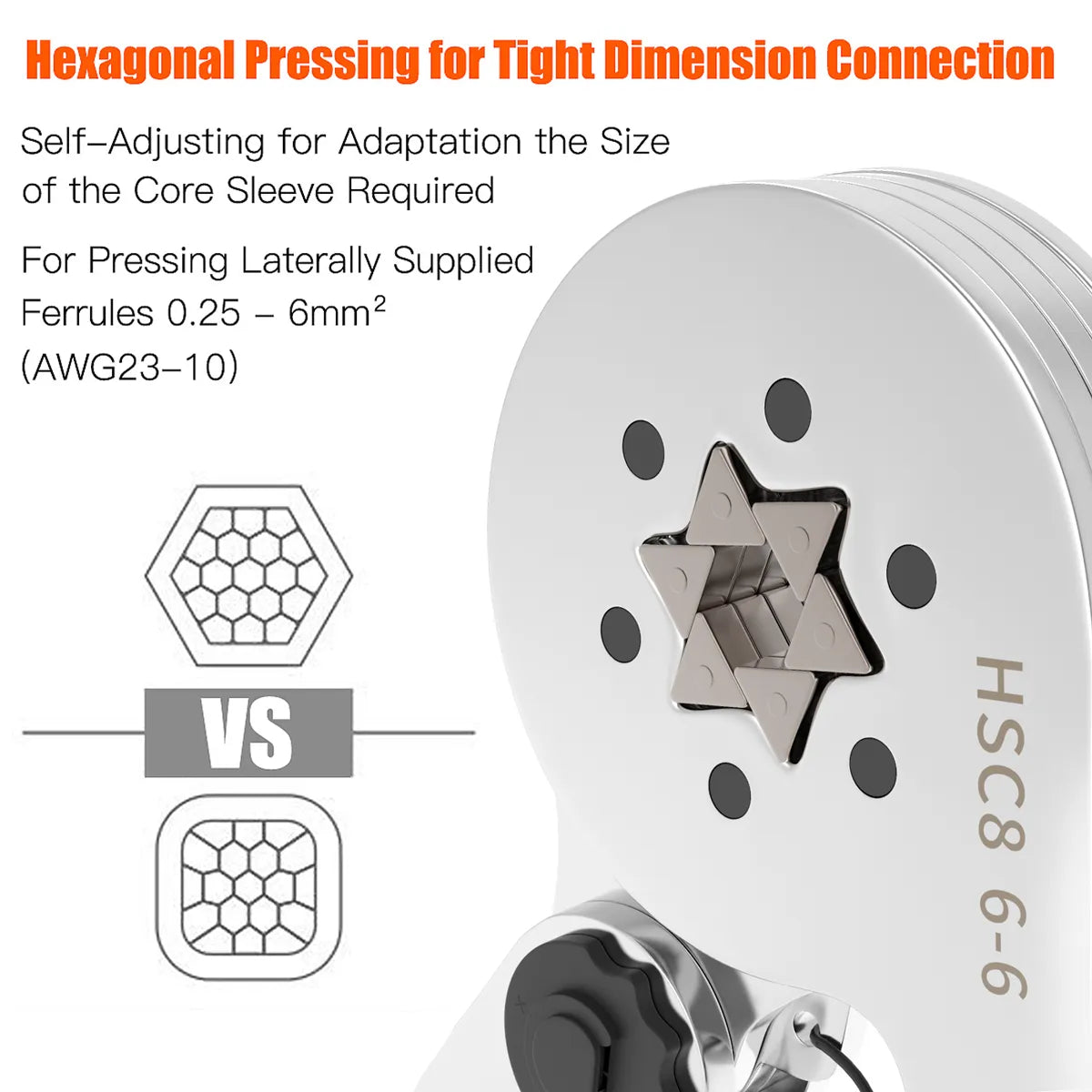 Hexagonal Ferrule Crimp Tool Wire Ferrule Crimping Tool HSC8 6-6/6-4 Self-adjustable Ratcheting Crimper for AWG23-10 0.25-6.0mm²