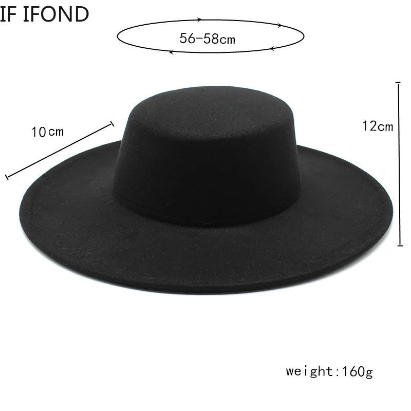 French Women's Hat Big Wide Brim 10CM Fedora Hat Winter Wool Derby Wedding Jazz Hats Flat Top Felt Hat