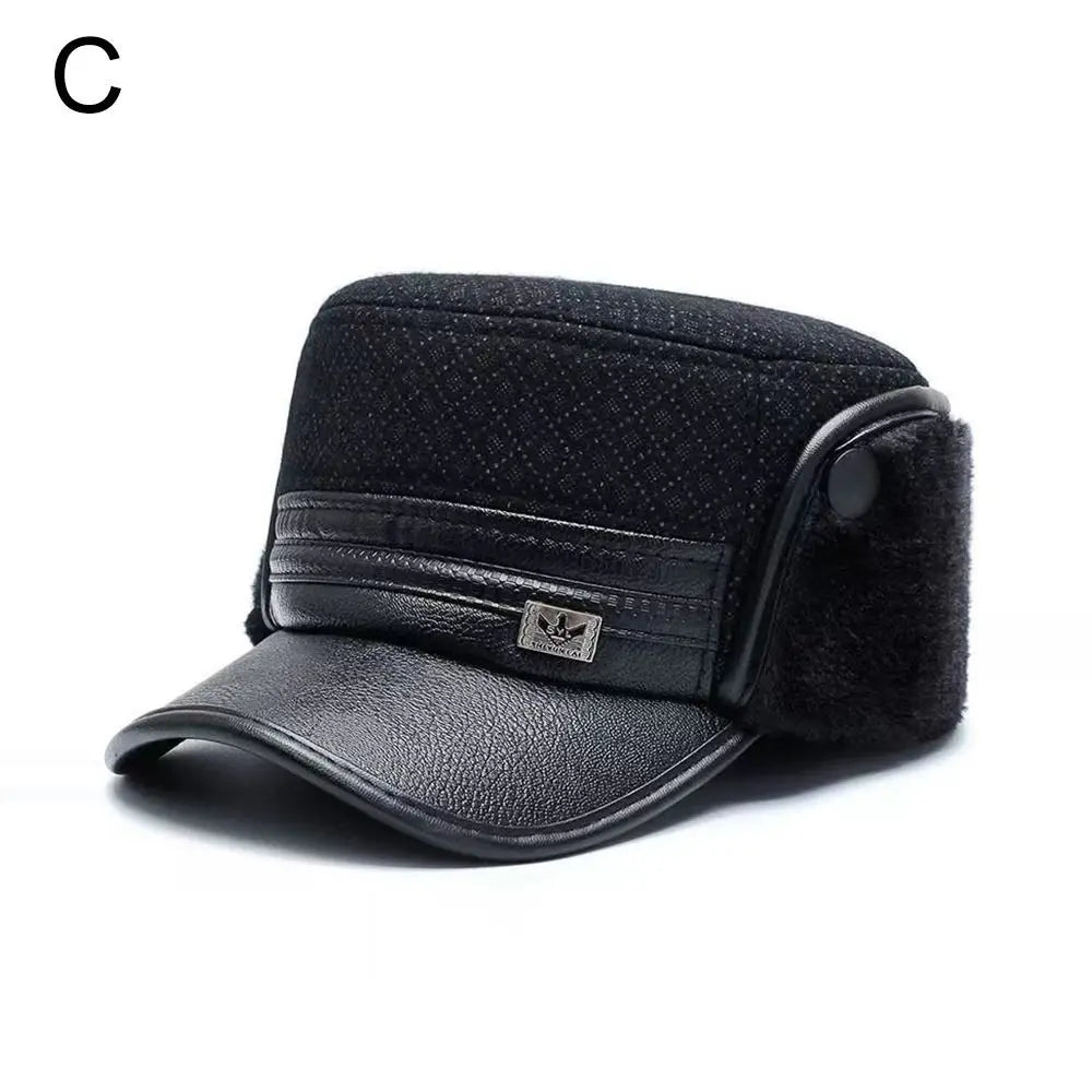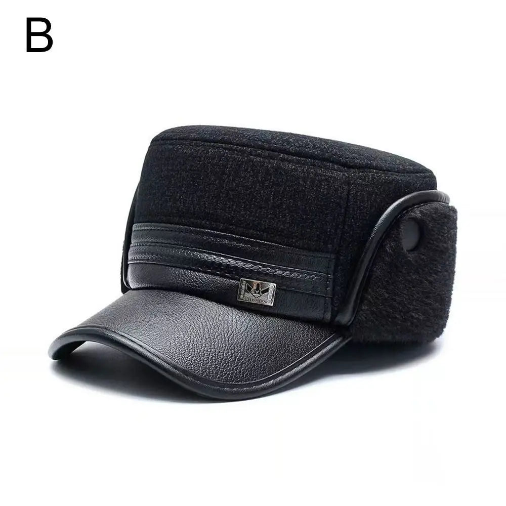 Men Winter Baseball Cap Outdoor Cycling Ear Protection Warmth Peaked Hat Casual Sunhat Woolen Knitted Bomber Hats 56-61CM