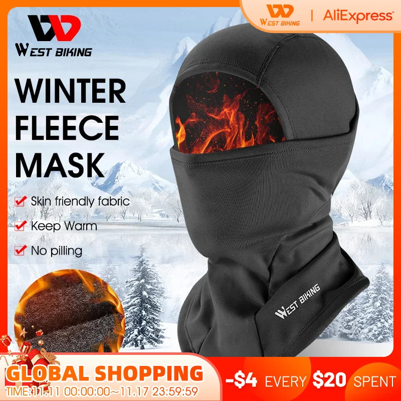 WEST BIKING Winter Cycling Cap Fleece Balaclava Bicycle Headwear Scarf Men Women Ski Helmet Liner Full Face Windproof Sport Hat
