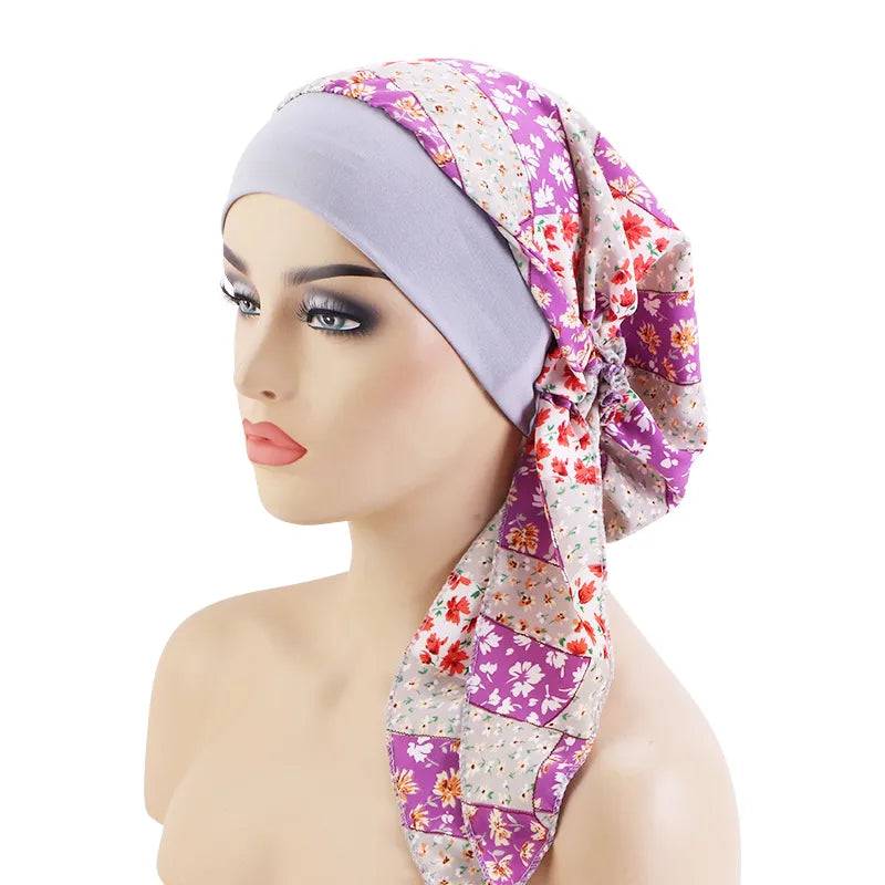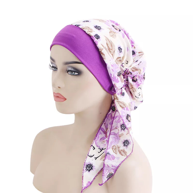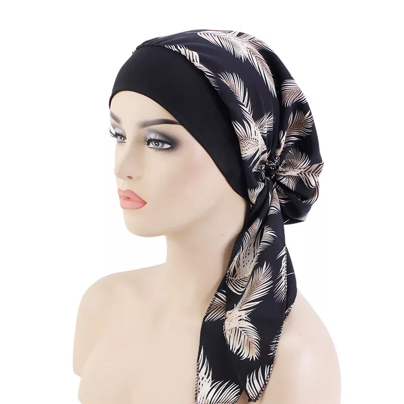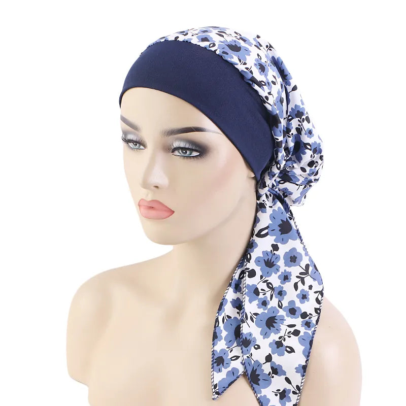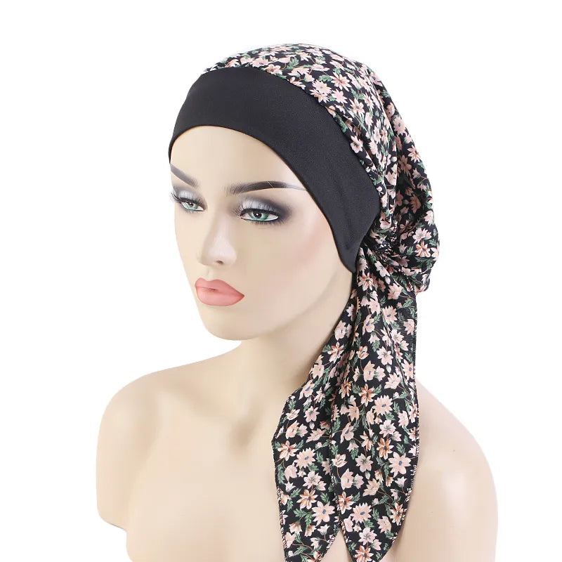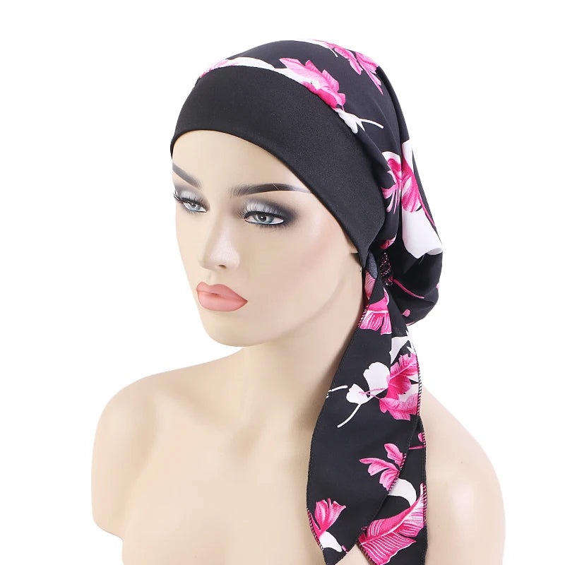 Women Printed Pre-tie Headscarf Elastic Muslim Female Turban Cancer Chemo Hat Hair Loss Cover Head Wrap Headwear Stretch Bandana