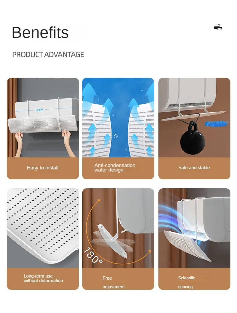 ADJUSTABLE: Suitable for all season The arm part of Our air deflector can be adjusted freely to change the air-conditioner wind direction. It is convenient for both summer and winter to enjoy cool and warm air respectively