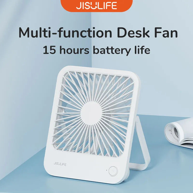 JISULIFE Portable Small Desk Fan Ultra Quiet Table Fan USB Rechargeable Cooling Fan With 4 Speed Powerful Wind Offices Fan