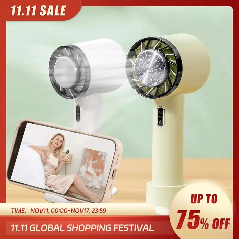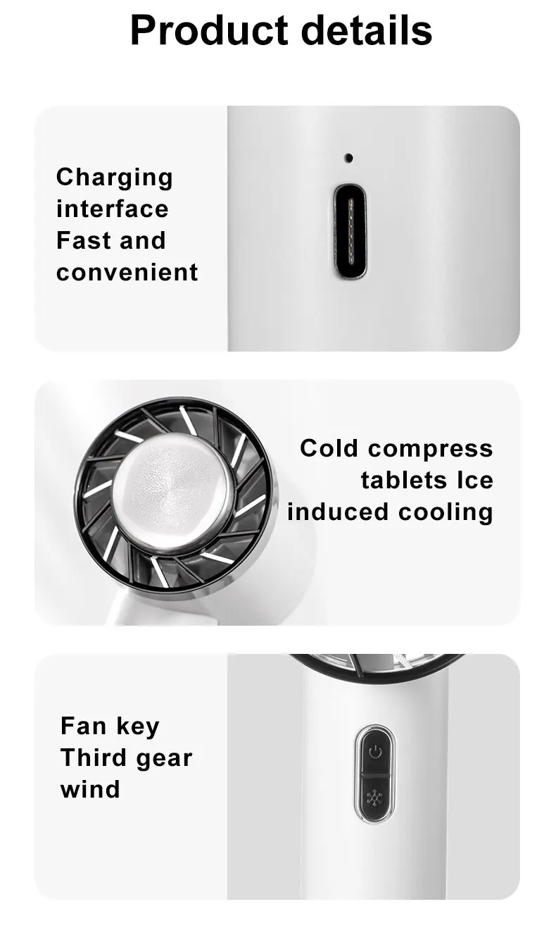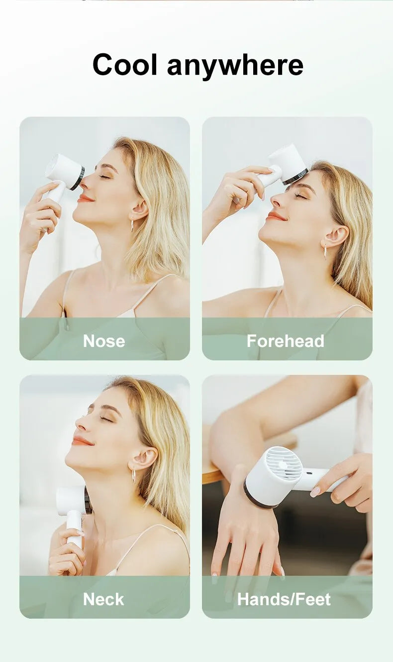 Portable Hand Fan Air Cooler Outdoor Semiconductor Refrigeration Cooling 2200mAh Battery USB Rechargeable Cold Fan
