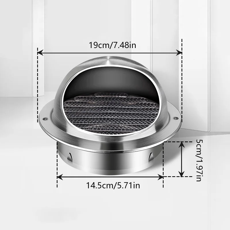 This stainless steel wall extractor vent outlet has a fine mesh to keep pests out and a weather seal to prevent unwanted leaks and drafts.