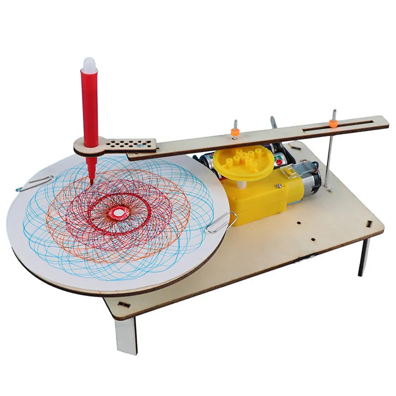 DIY Kids Creative Assembled Wooden Electric Plotter Kit Model Automatic Painting Drawing Robot Science Physics Experiment Toy