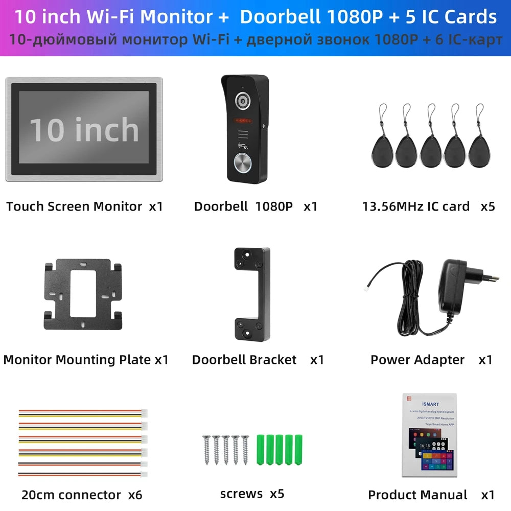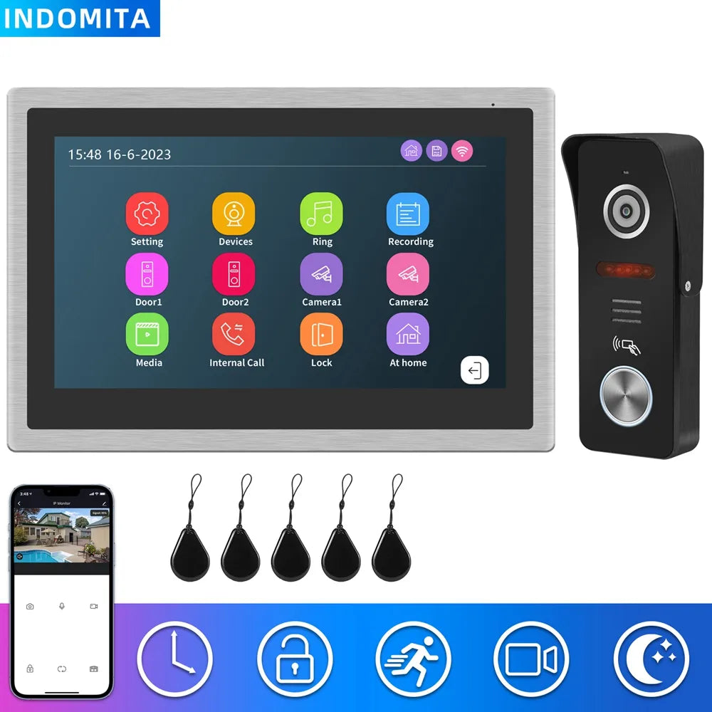 Indomita Tuya Smart Home Intercom System,WiFi Video Door Phone Camera,Works Alexa,Touch Screen LCD Display,RFID Doorbell Unlock