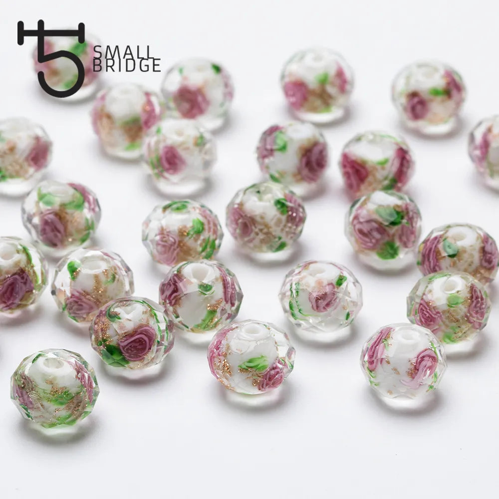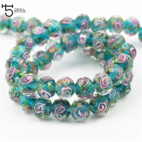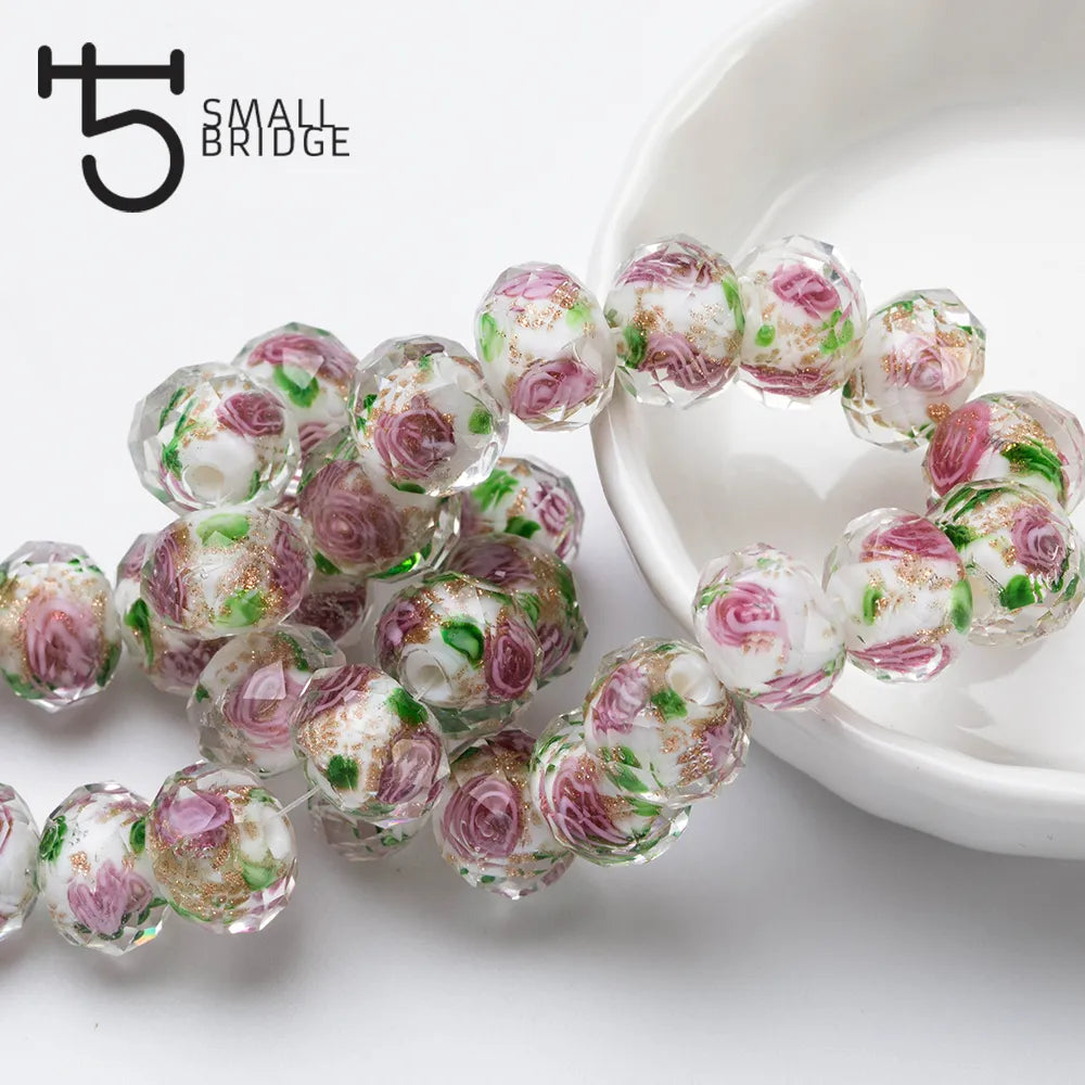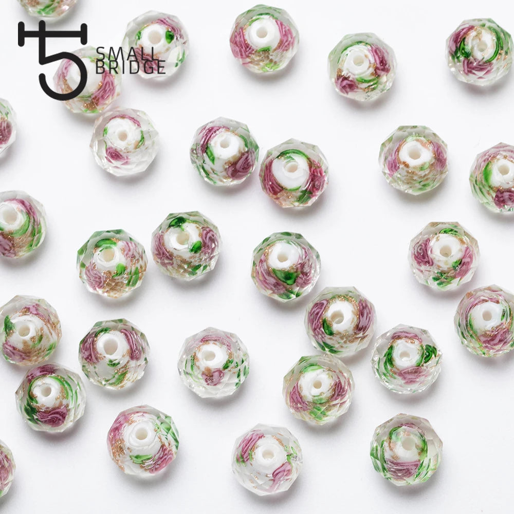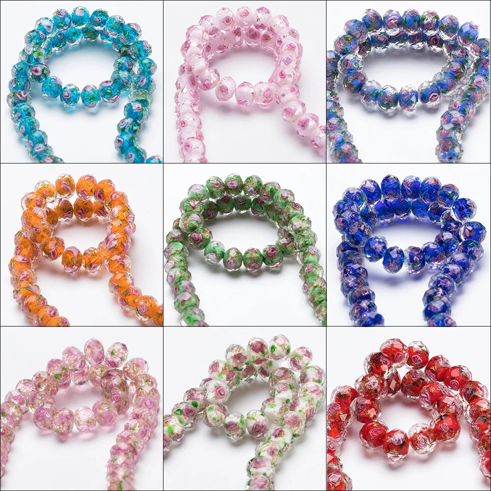 NAME:12mm Large Murano Transparent Glass Lampwork Beads for Jewelry Making Women Diy Bracelet Flower Rondelle Faceted Beads L002