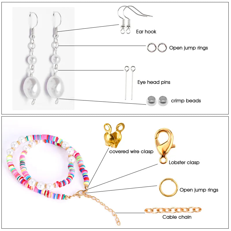 Product Contents: earring hooks, bracelet clasps and closures, beading supplies