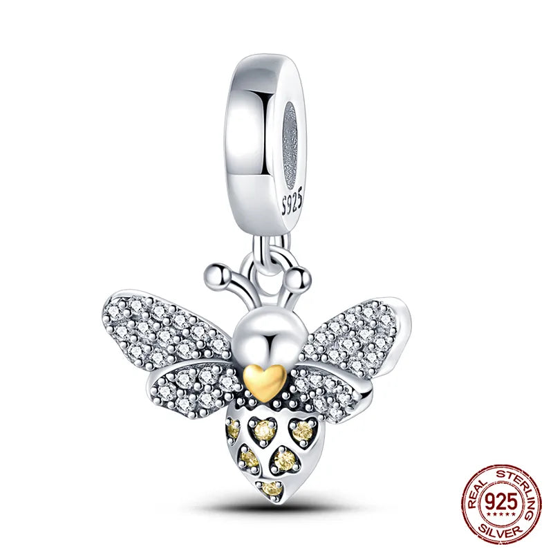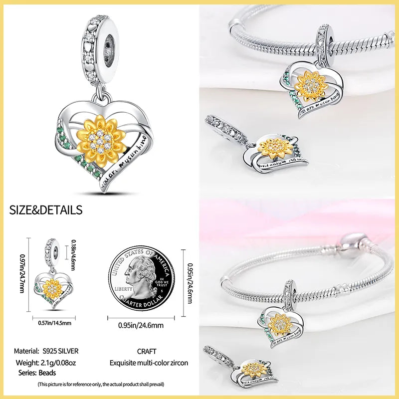 New 925 Sterling Silver Fashion Golden Sunflowers Heart Charms Beads Fit Pandora 925 Original Bracelets Luxury Party DIY Jewelry