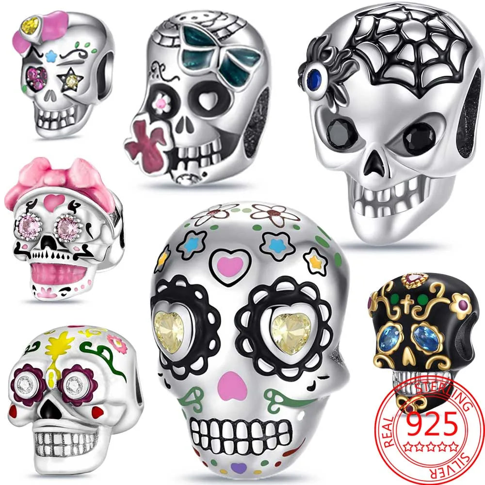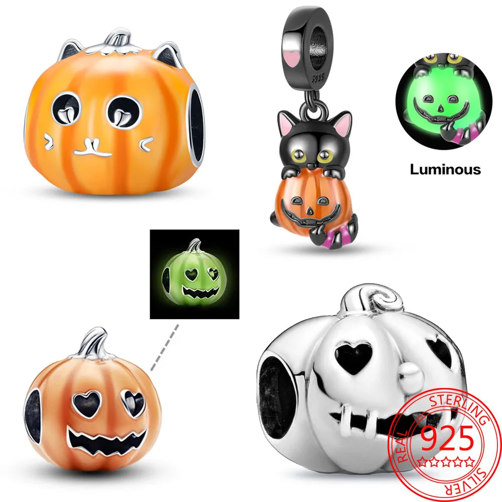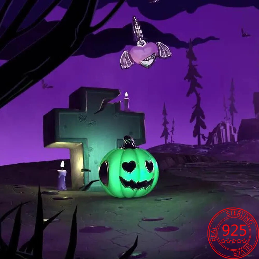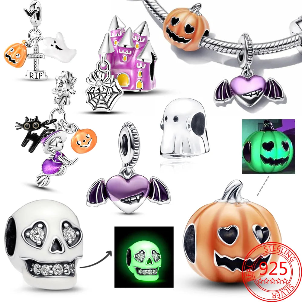 New Halloween Charm 925 Silver Murano Glass Beads Pumpkin Bat Witch Charm Fit Pandora Bracelet & Bangle Christmas Jewelry Gifts