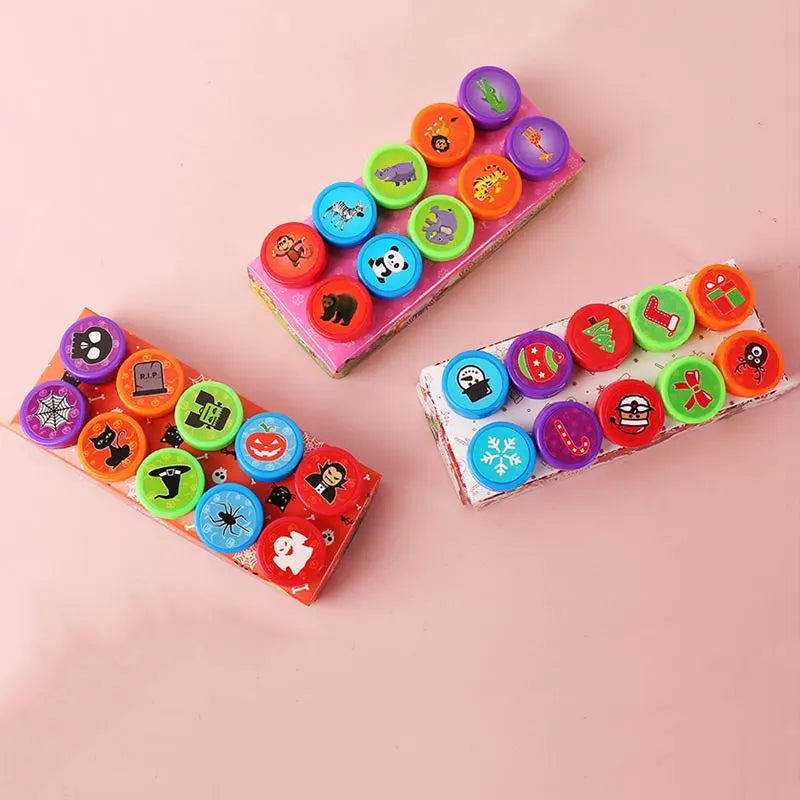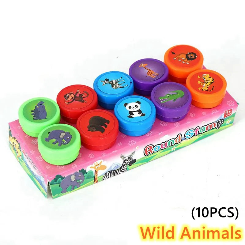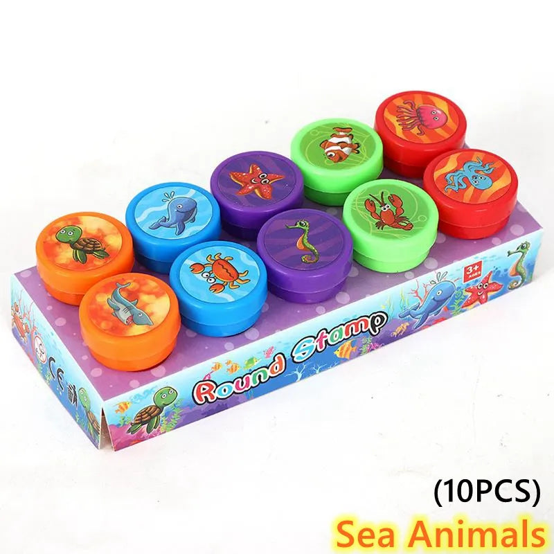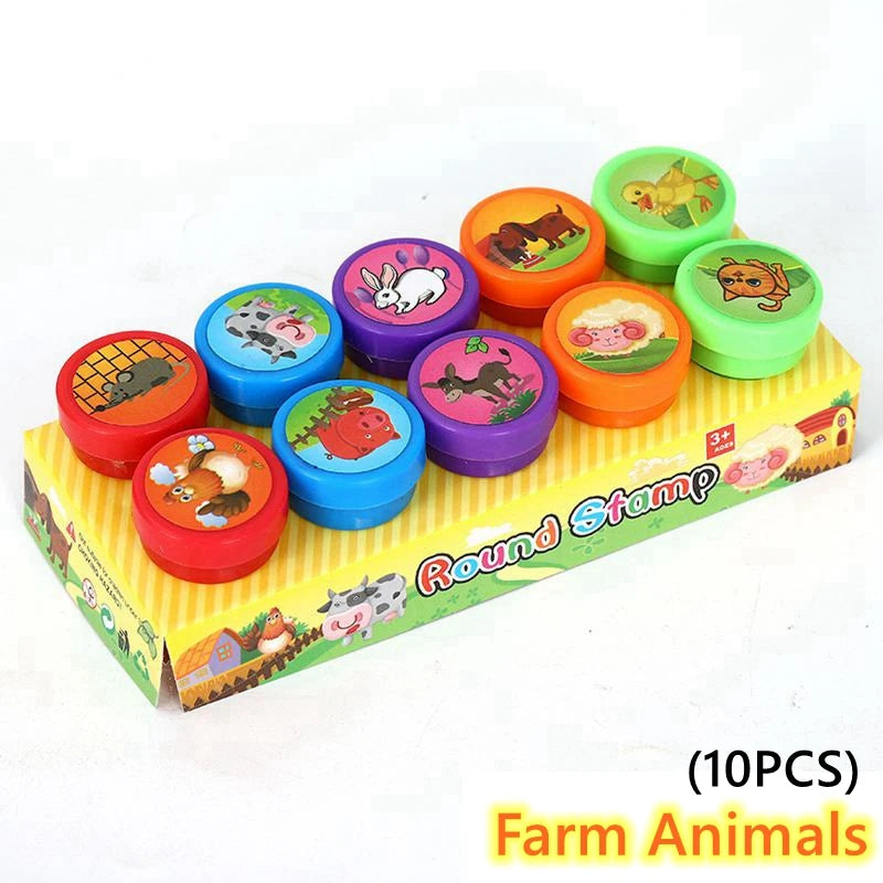 10PCS Cartoon Animal Self-ink Stamps Toys Kids Birthday Party Favor Guests Souvenir Giveaway Christmas Gifts Kid Children Pinata