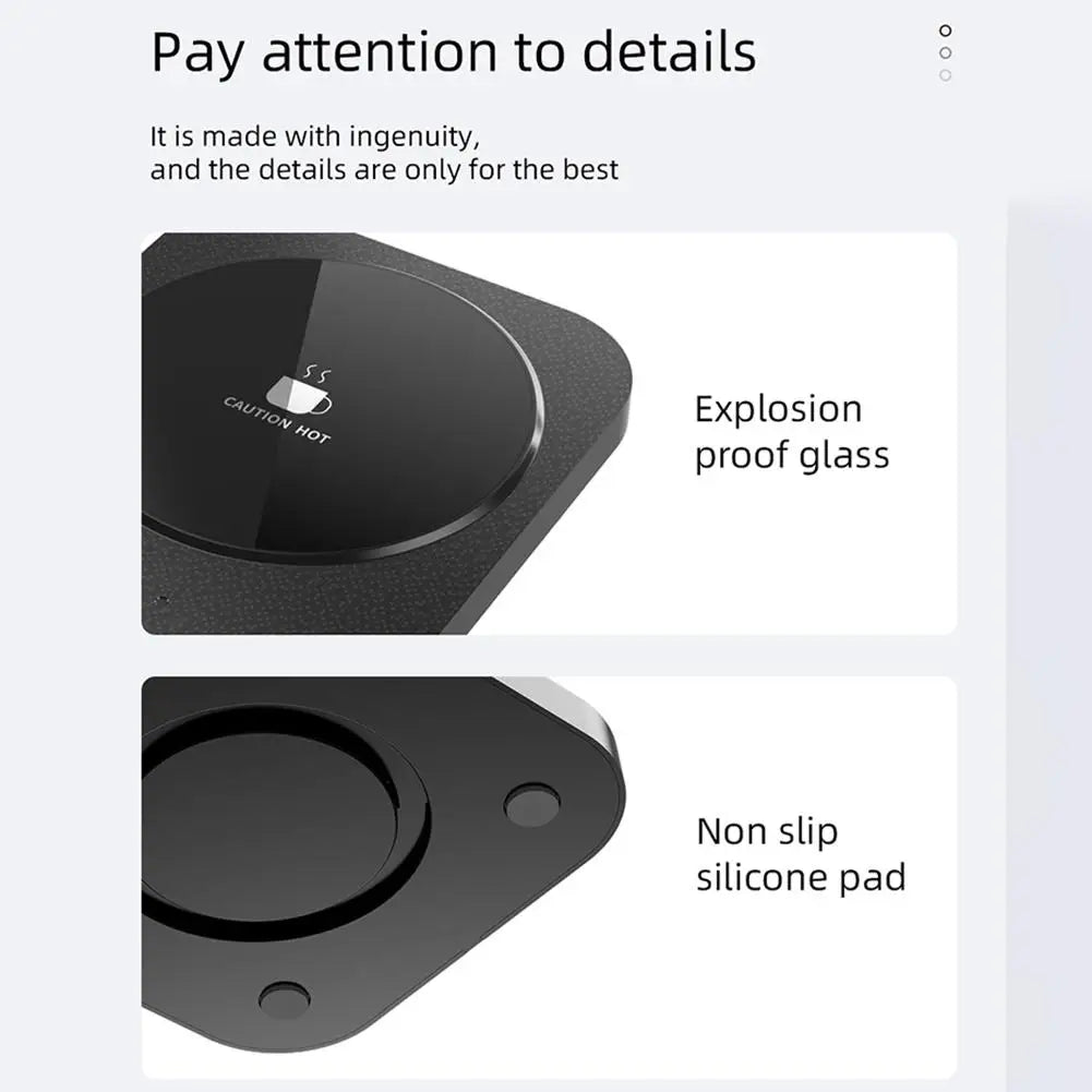 - Wireless charging cup warmer: In addition to heating function, it can also be used as a wireless charging device for mobile phones. 10W power, wireless fast charging for mobile phones, easy to charge with just a touch. Note: QC3.0 adapter is required to ensure fast and wireless charging of the phone