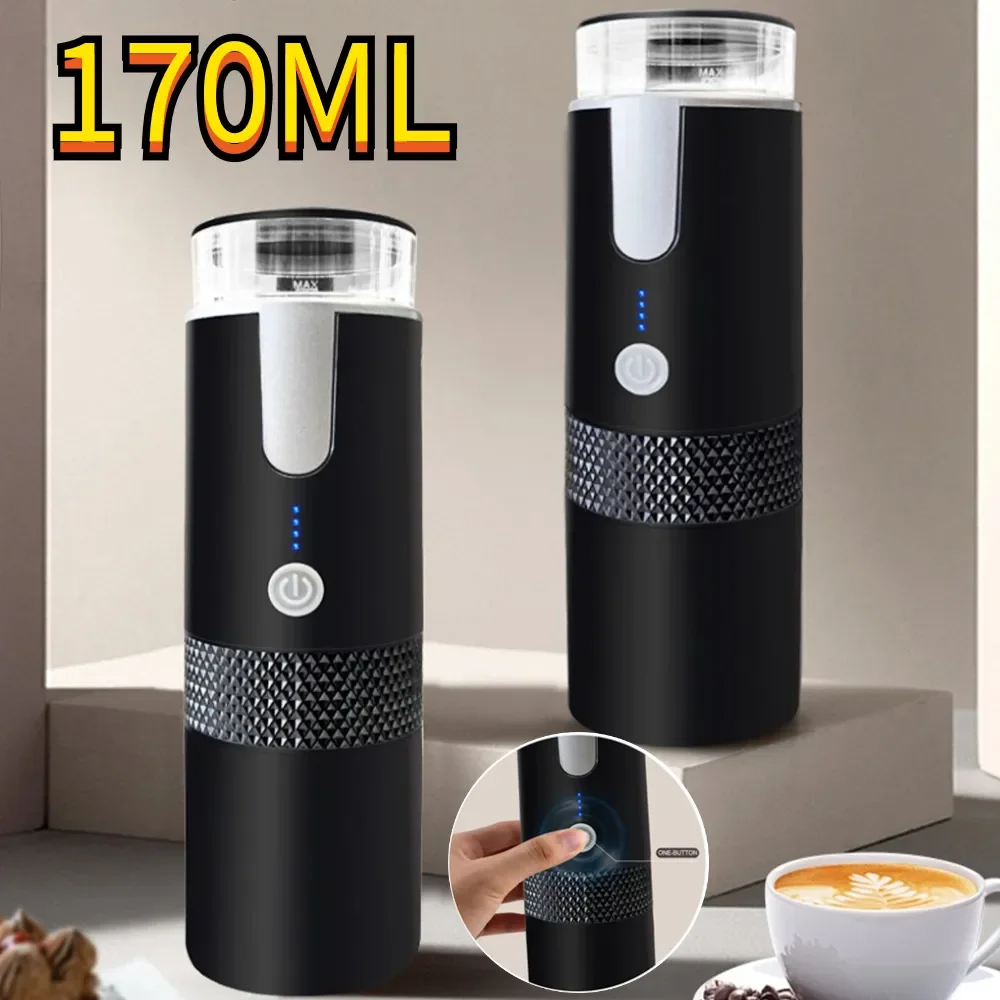 170ML Coffee Brewer Portable Capsule Coffee Machine Rechargrable Compatible with Capsule & Ground Coffee for Home Kitchen Office