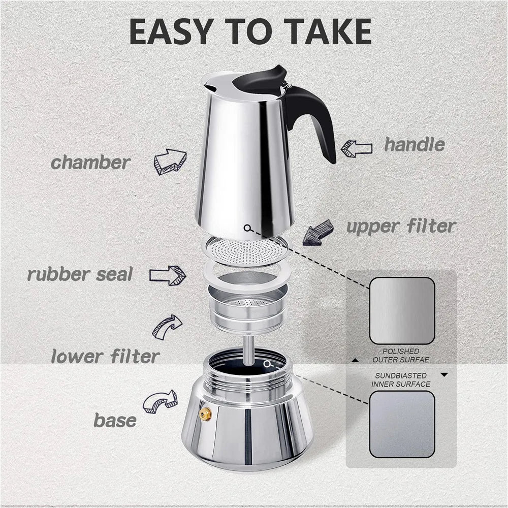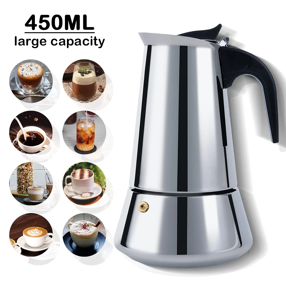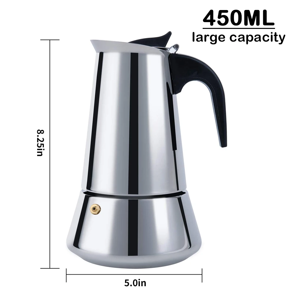 Stovetop Espresso Maker Moka Coffee Maker Stainless Steel Moka Pot Italian Classic Espresso Moka Pot 9cup/450ml