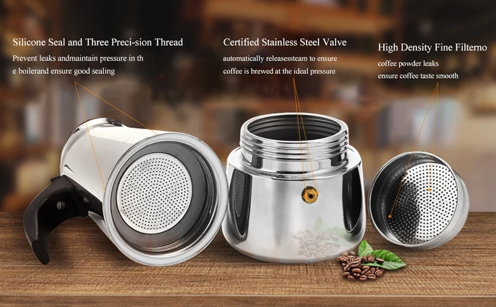 The coffee pot is made of food-grade stainless steel, which is resistant to dirt and wear, and is not easy to corrode. It is more secure to use directly in contact with food. Tasteless and rot-resistant materials, boiled is the mellow Italian flavor.