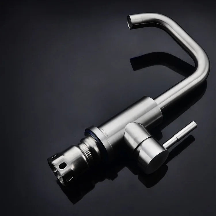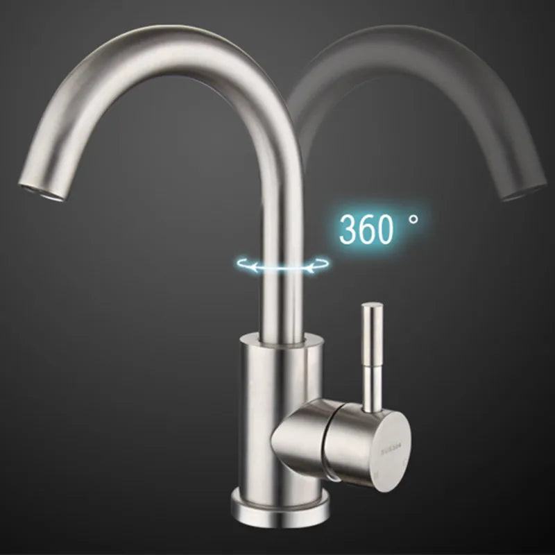Hot Cold Water Faucet Bathroom Kitchen Basin Single Handle 304 Stainless Steel Sink Faucets 2 Holes