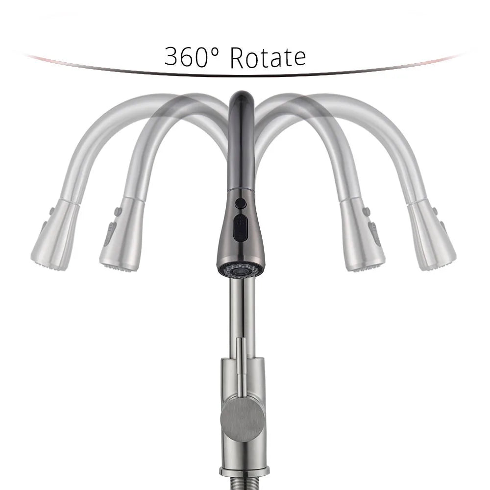 Brushed Nickel Mixer Faucet Single Hole Pull Out Spout Kitchen Sink Mixer Tap with Stream Sprayer Head Chrome/Black Kitchen Tap