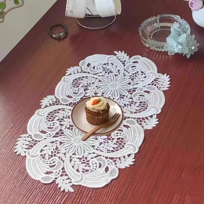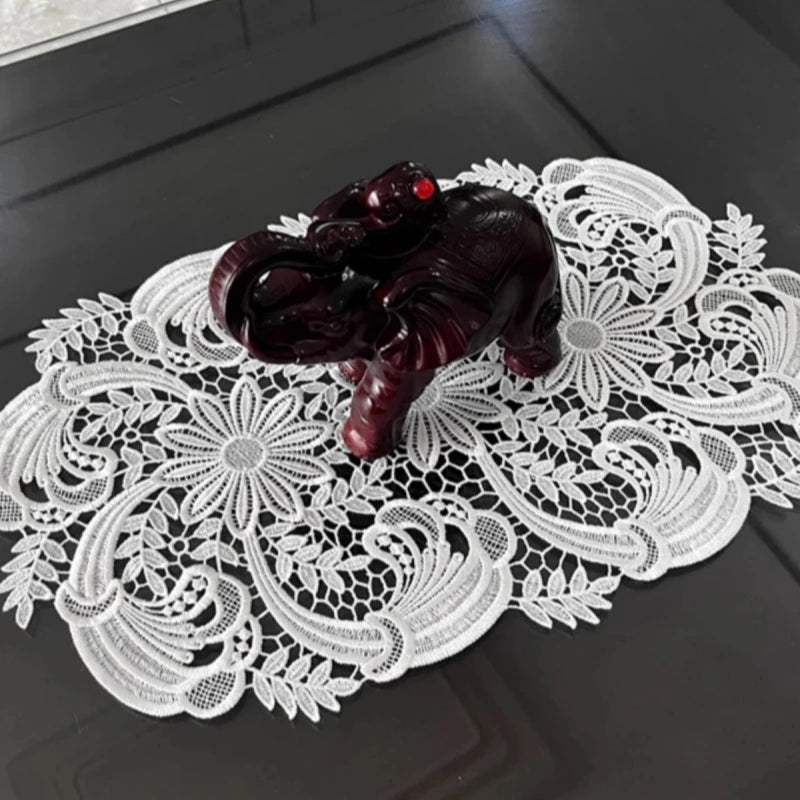 Chinese classic embroidery crochet hollow process oval tablecloth table mat set kitchen living room storage cabinet dust decor
