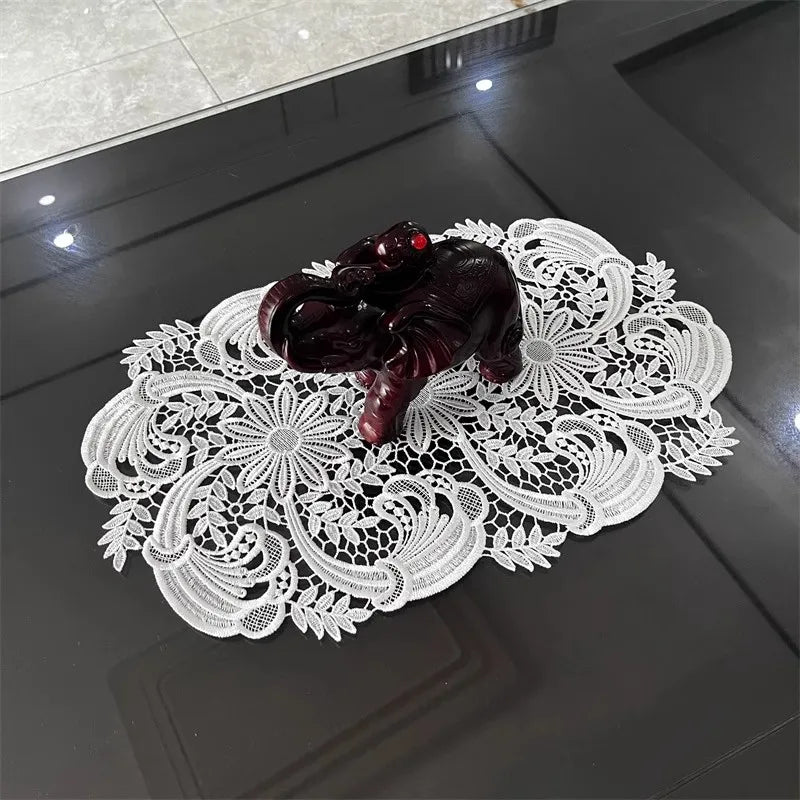 Chinese classic embroidery crochet hollow process oval tablecloth table mat set kitchen living room storage cabinet dust decoration