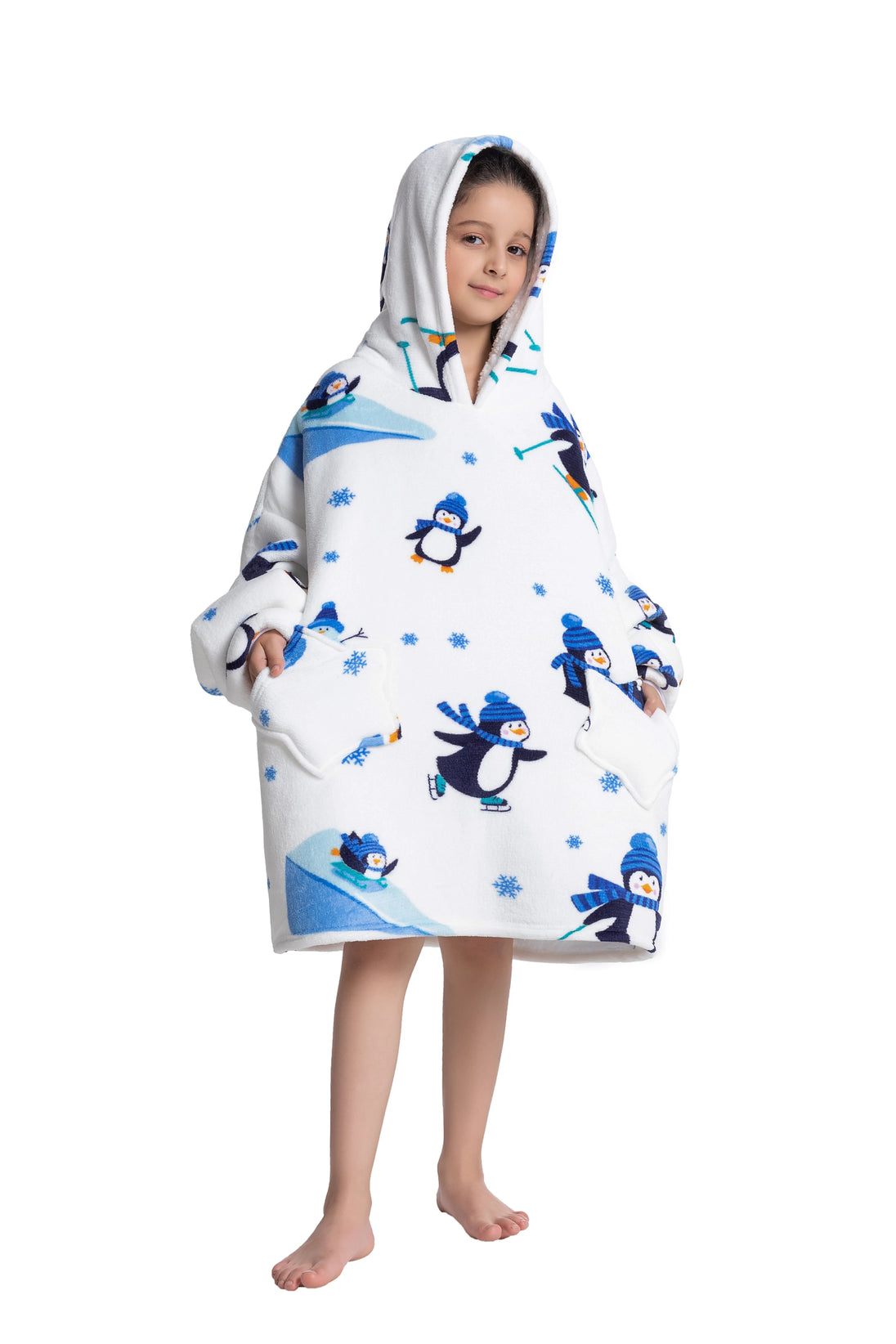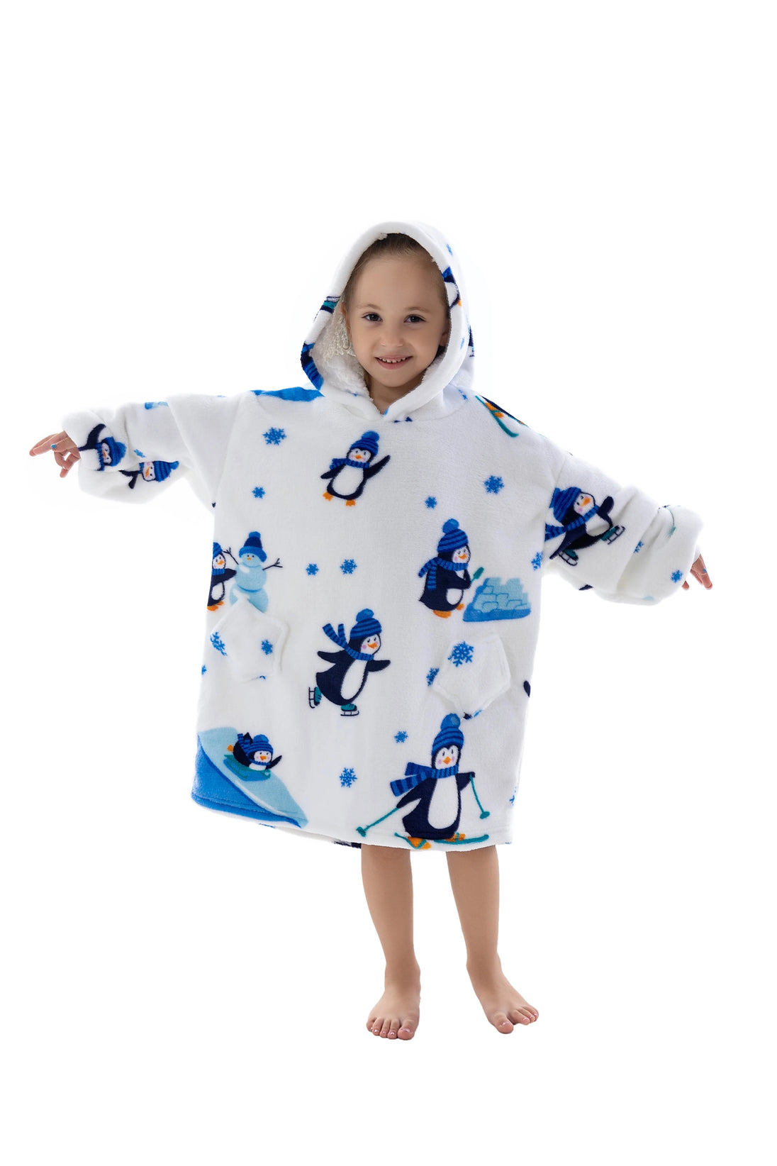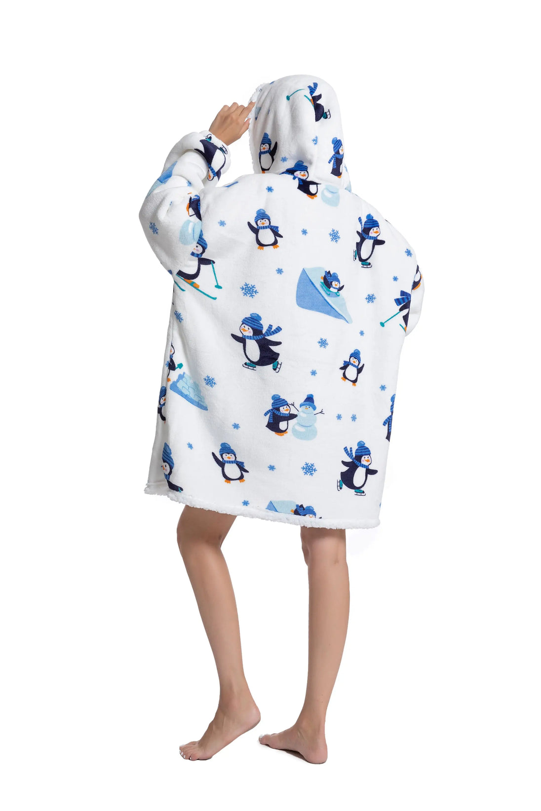 Warm Wearable Blanket for Winter Oversized Flannel Sherpa Cozy Hoodie for Adults Kids Toddlers Halloween Xmas Gifts
