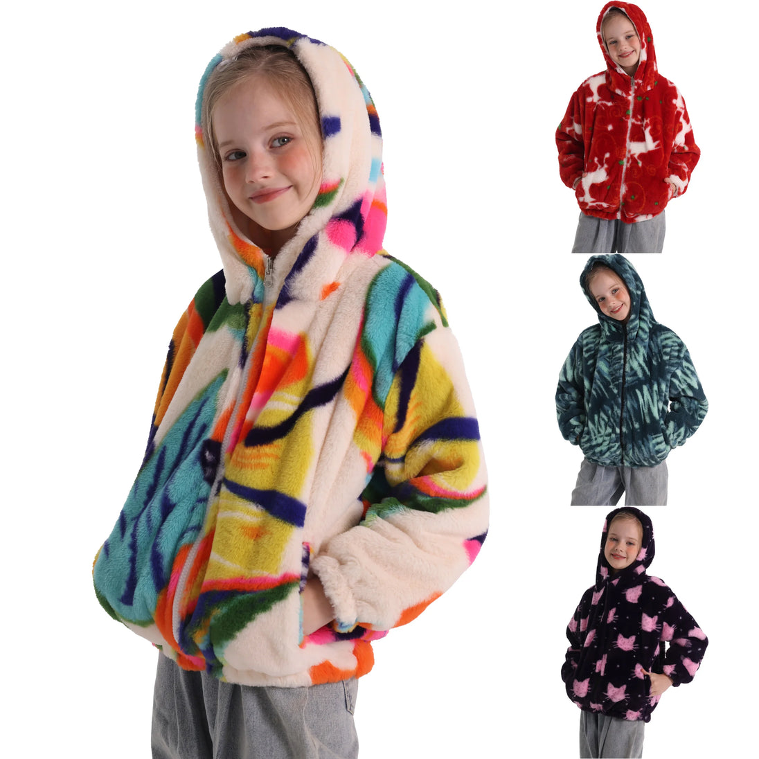 Winter Warm Fashion Hoodies Cute Kawaii Faux Fur Flannel Coat Kids Children Casual Top Clothing Sweatshirt Thicken Outwear