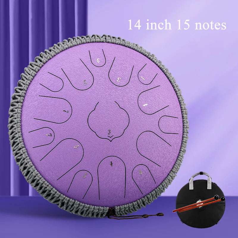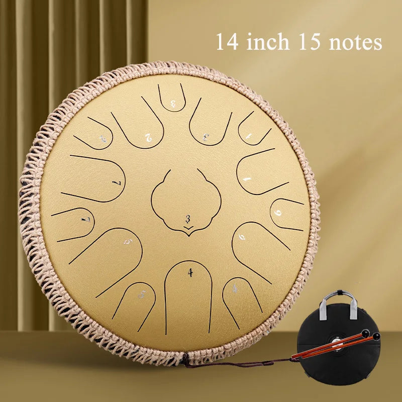 Hluru Glucophone Steel Tongue Drum D 14 inch 15 Notes Ethereal Drum Handpan Percussion Musical Instrument