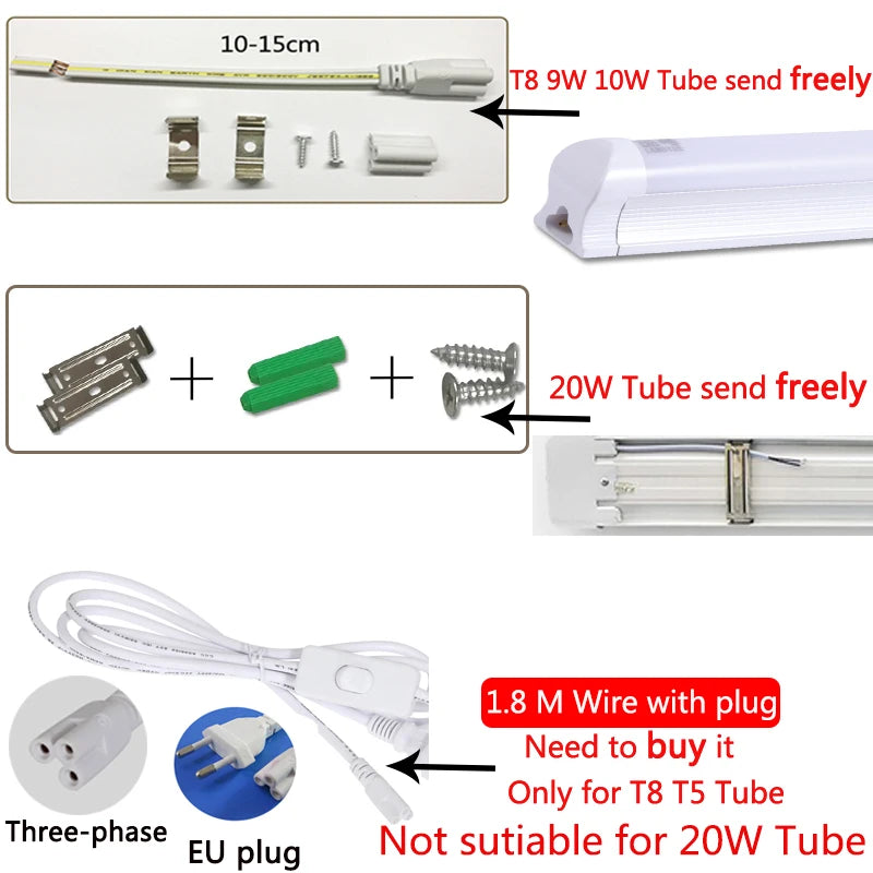 A1: The 1.8M wire with plug can be used in T8 tube ,need to buy separately, but it's not suitable for our new arrival purified tube 20W .
