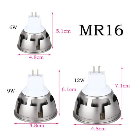 Ultra Bright LED COB Spotlight 6W 9W 12W E26 E27 MR16 GU10 GU5.3 Light Bulb 12V AC 220V 110V Spot light Lamp Warm Cool White
