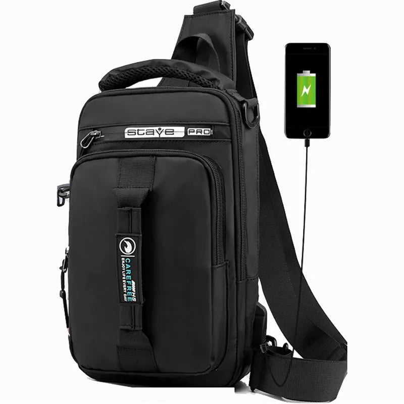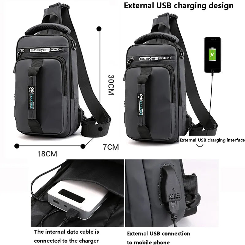 SUUTOOP Men Multifunction USB Shoulder Bag Crossbody Cross Body Sling Chest Bags Waterproof Travel Pack Messenger Pack For Male