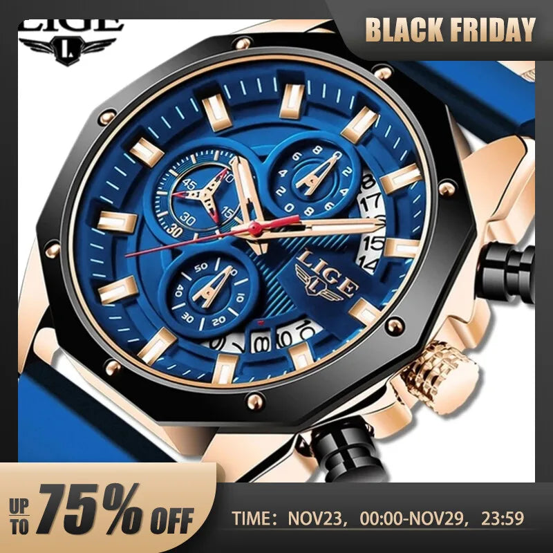 LIGE Fashion Men Watches Top Brand Luxury Silicone Sport Watch Men Quartz Date Clock Waterproof Wristwatch Chronograph Clock Man