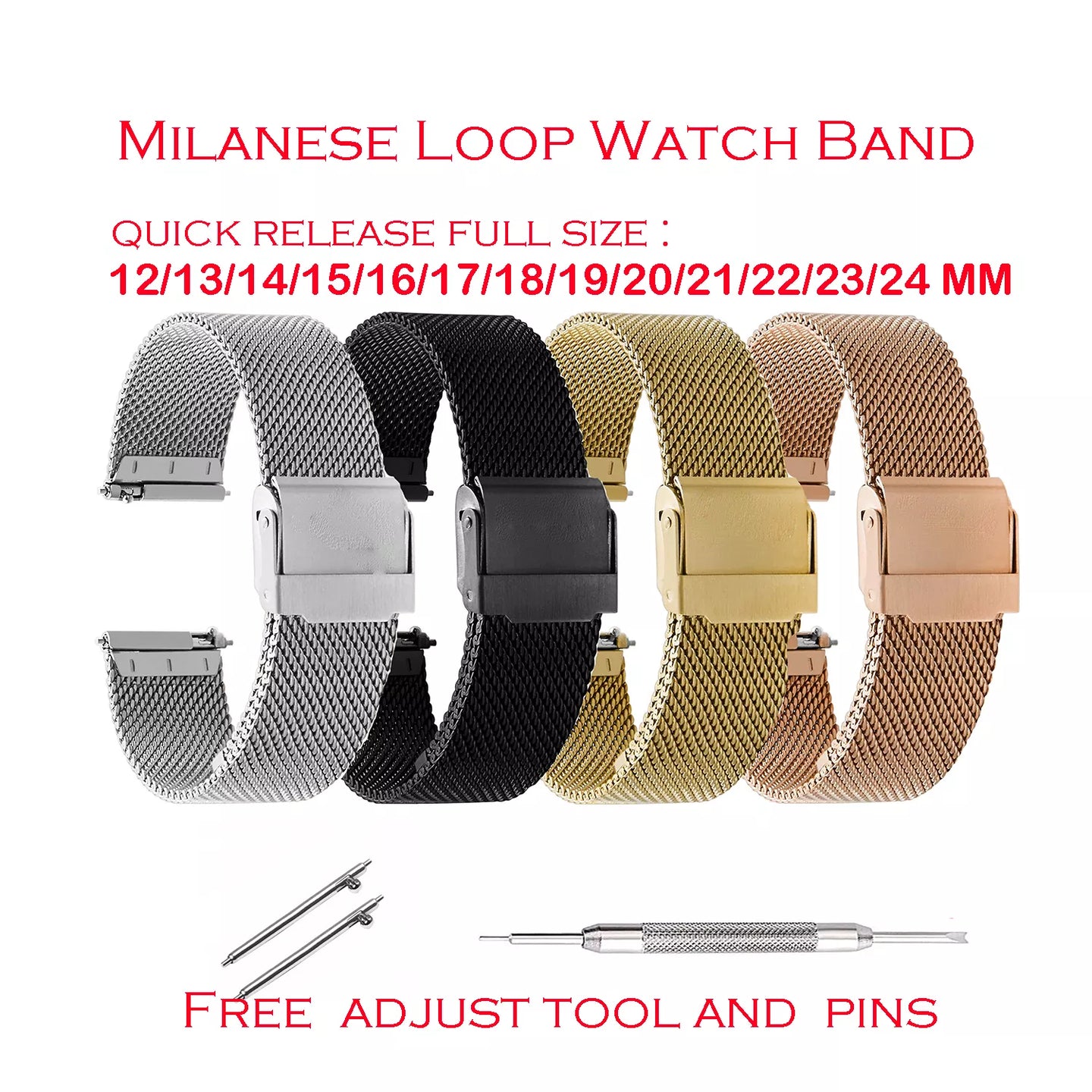 Mesh Watch Band for Seiko for DW Watch Milanese Strap 12 13 14 15 16 17 18 19 20 21 22 23 24mm Men Women Steel Watch Strap Tools