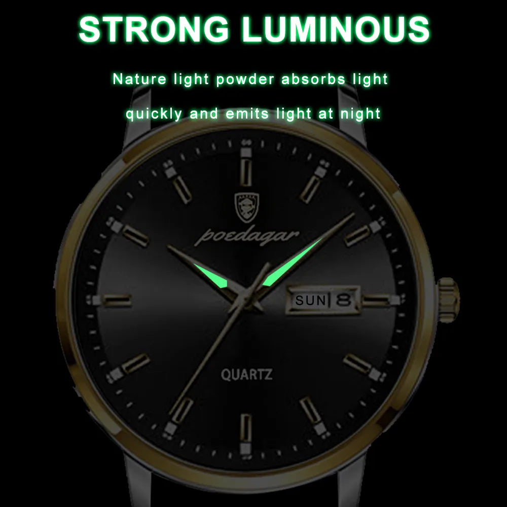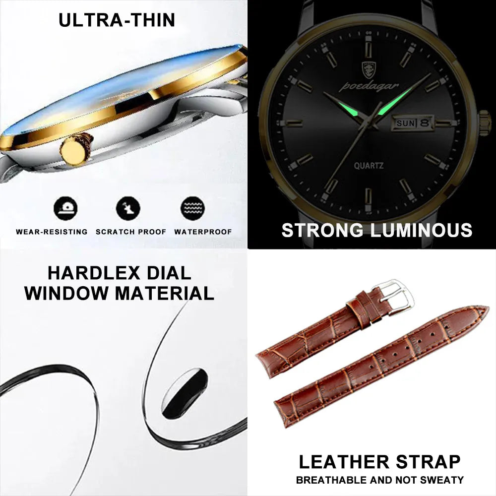 POEDAGAR Men Watch Business Quartz Watches Fashion Leather Waterproof Luminous Week Date Top Brand Luxury Men's Wristwatch Gift