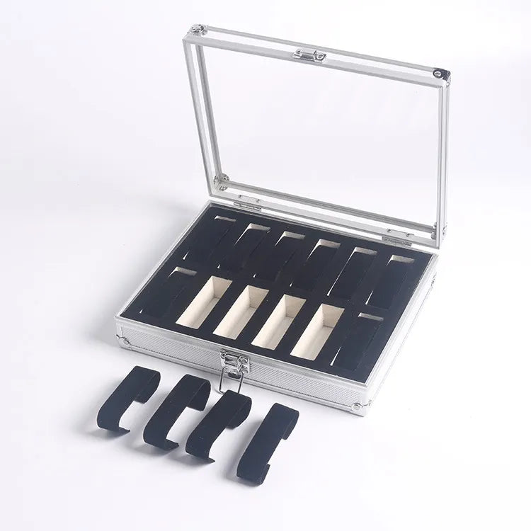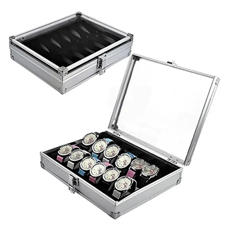 Useful Aluminium Watches Box 12 Grid Slots Jewelry Watches Display Storage Box Square Case Suede Inside Rectangle Watch Holder