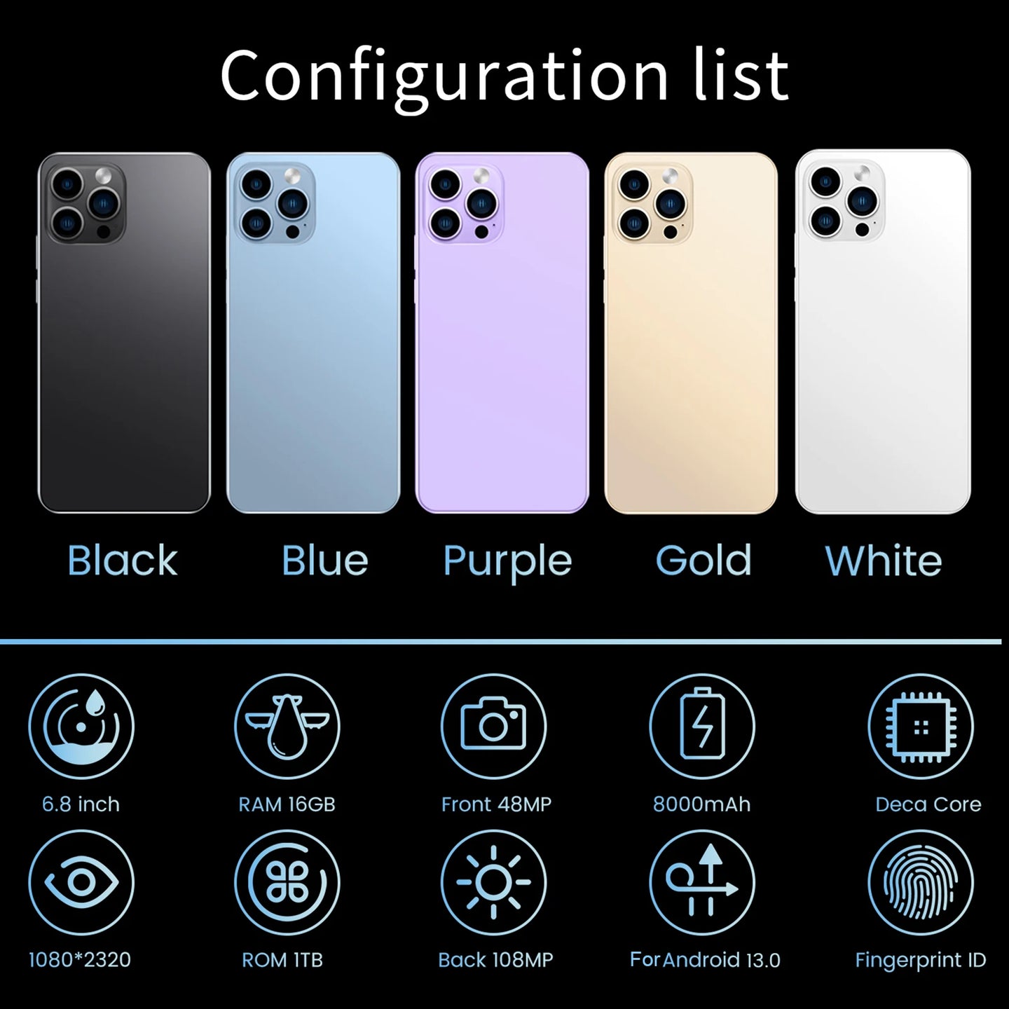 Global Version New Smartphone 15 Pro Max Phone 72MP HD Camera Face Recognition Cellphone 8000mAh LCD Screen Android Smart Phone