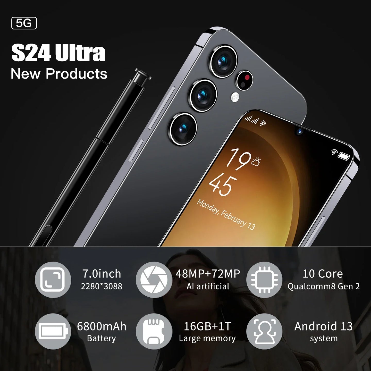 New S24 Ultra Smartphone 7.0 inch HD 16GB+1TB 5G Unlocked Mobile Phones 6800mAh Android 13.0 Global Version smartphone