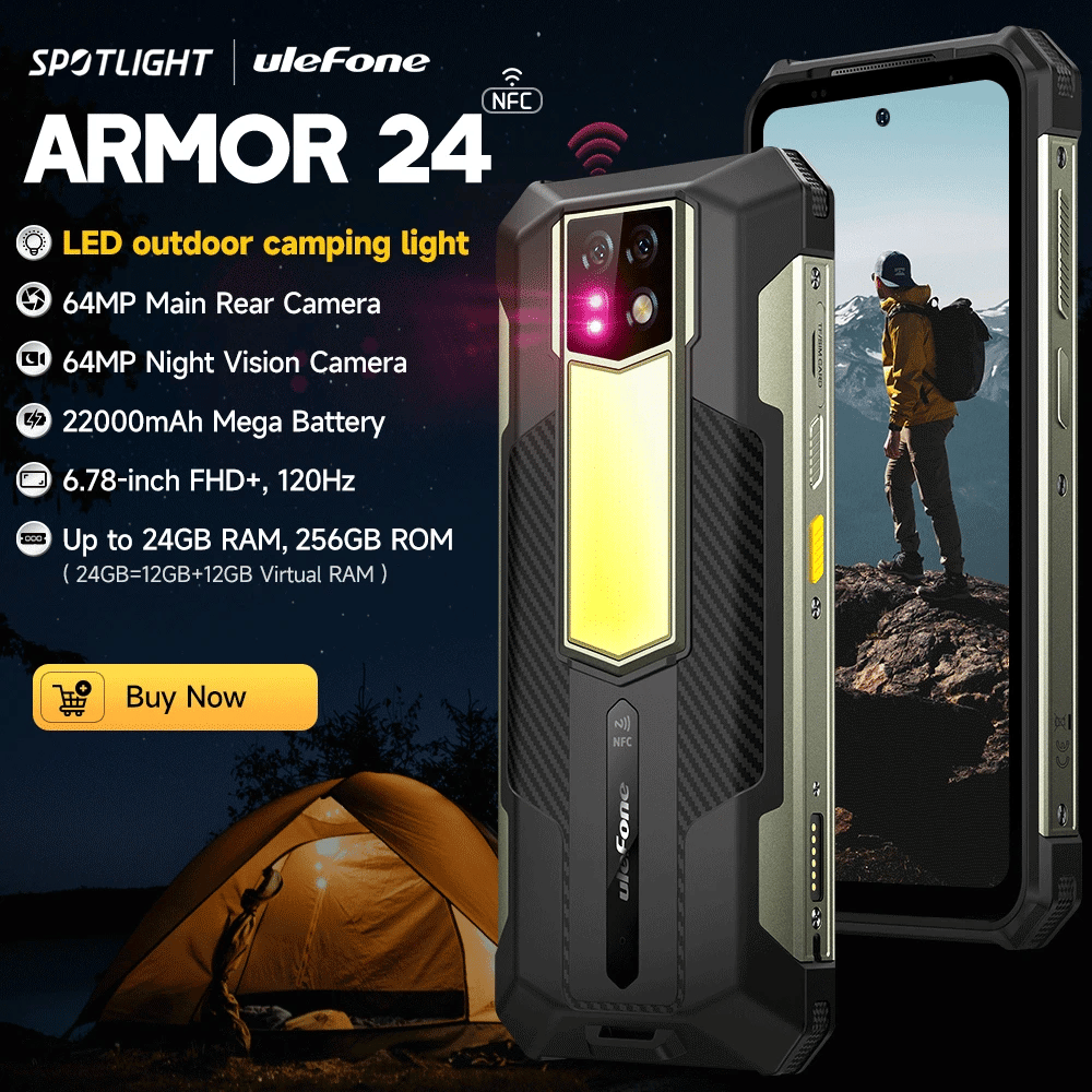 [World Premiere]Ulefone Armor 24 Rugged Phone 22000mAh 24GB+ 256GB 6.78"120Hz Smartphone 64MP+64MP NFC Phone global version
