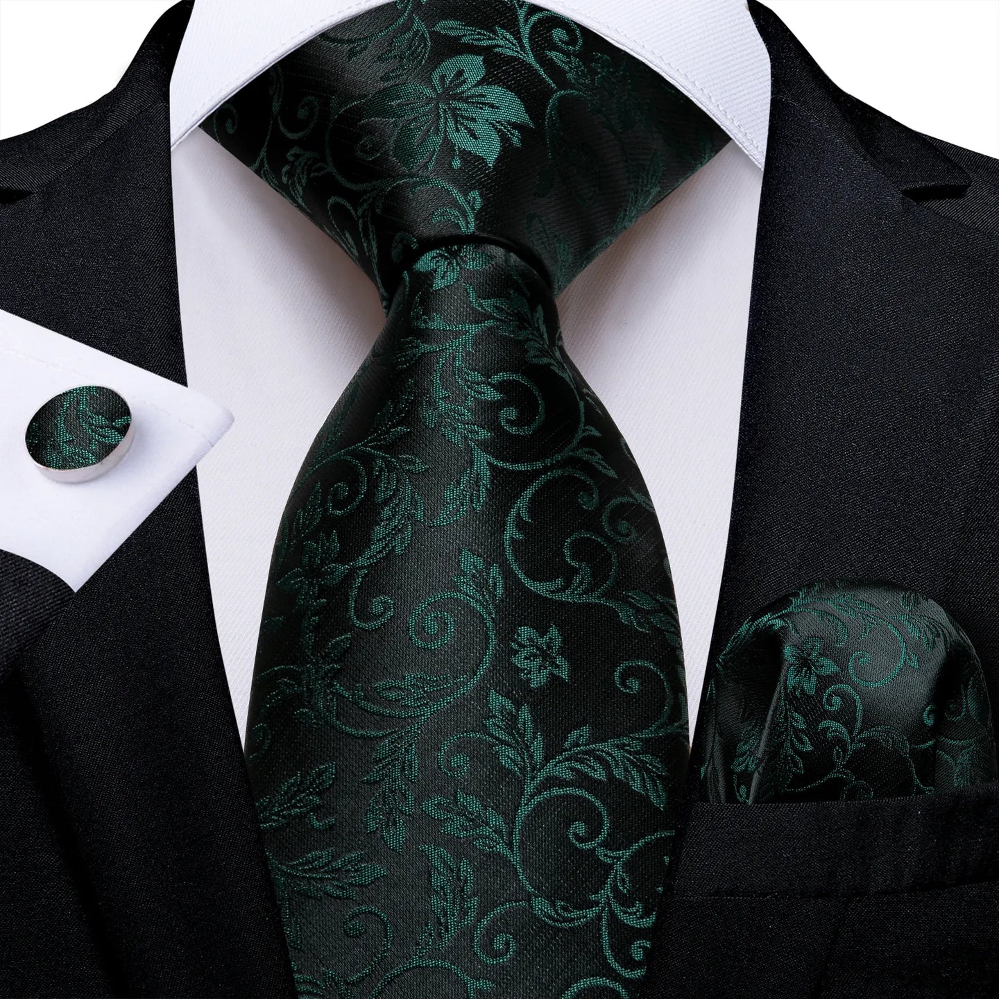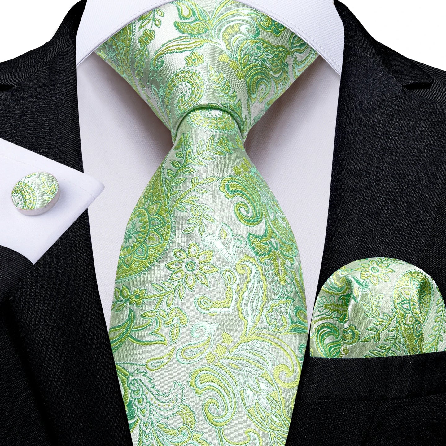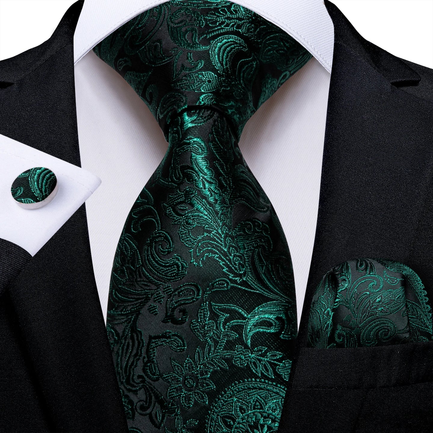 Gift Men Tie Teal Green Paisley Novelty Design Silk Wedding Tie for Men Handky cufflink Tie Set DiBanGu Party Business Fashion